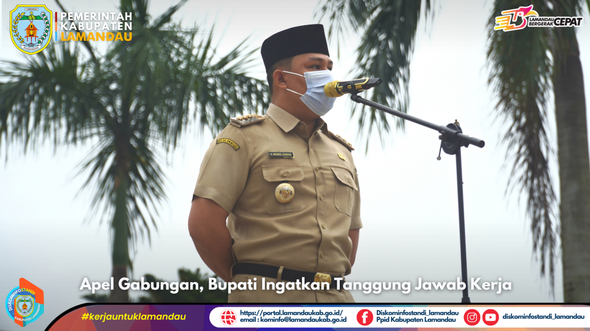 Bupati Lamandau Hendra Lesmana bertindak sebagai inspektur upacara menyampaikan sambutannya mengingatkan agar ASN/THL terus mengupdate pengetahuannya terkait aturan dan ketentuan yang berlaku saat ini, dan Bupati berharap agar ASN/THL selalu meningkatkan entitas kerja karena Bupati bersama OPD terkait telah membuat kebijakan baru terkait presensi yang diberlakukan 4 kali dalam sehari pada jam kerja untuk dapat dipedomani.