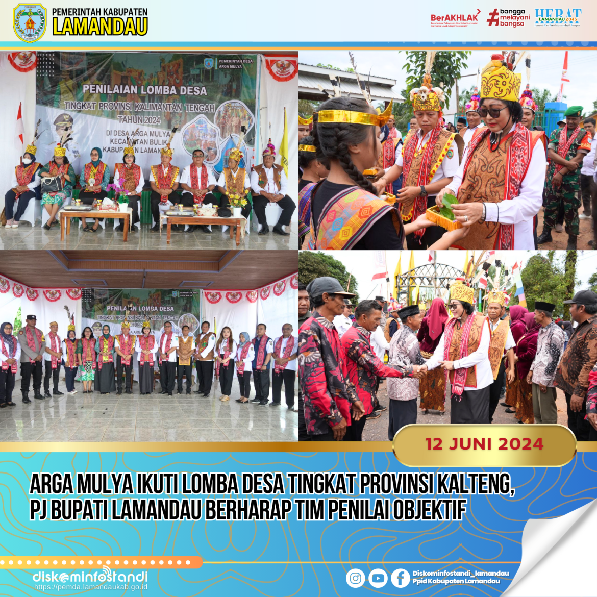 “Lomba desa ini menjadi ajang untuk memperlihatkan hasil pembangunan desa selama dua tahun terakhir. Arga Mulya menjadi desa yang kami anggap siap dan mampu mewakili kabupaten Lamandau pada lomba desa tingkat Provinsi Kalteng tahun 2024”, kata Pj Bupati Lamandau.