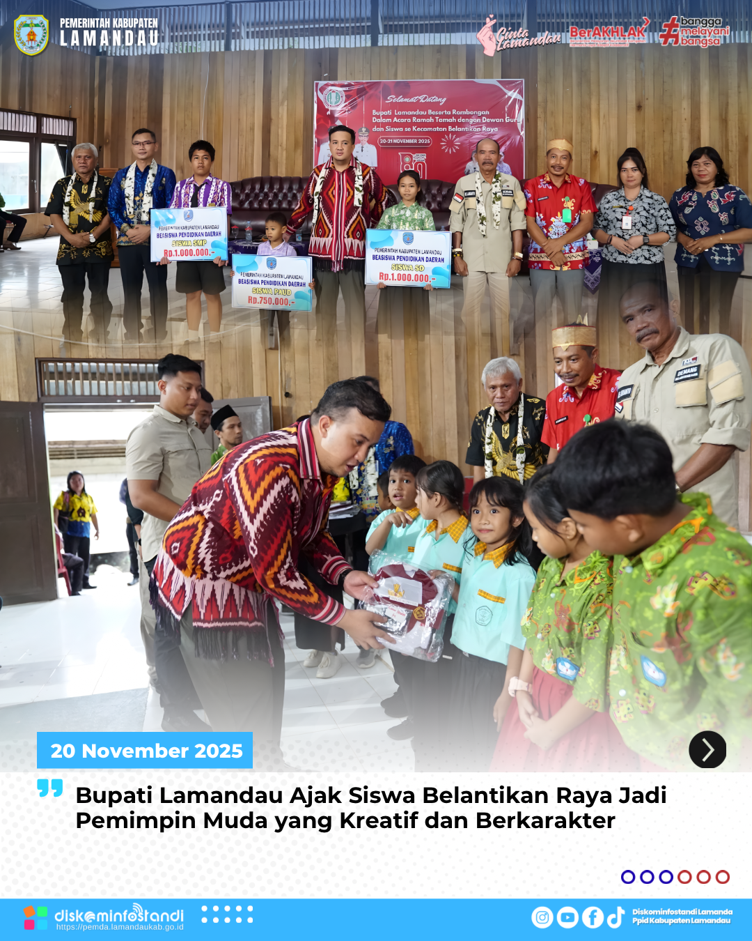 “Kalian adalah generasi yang akan menentukan wajah Lamandau di masa depan. Pemimpin tidak hanya ditentukan oleh kecerdasan, tetapi juga karakter—kejujuran, semangat belajar, kepedulian terhadap sesama, dan keberanian mencoba hal baru,” ujar Bupati.