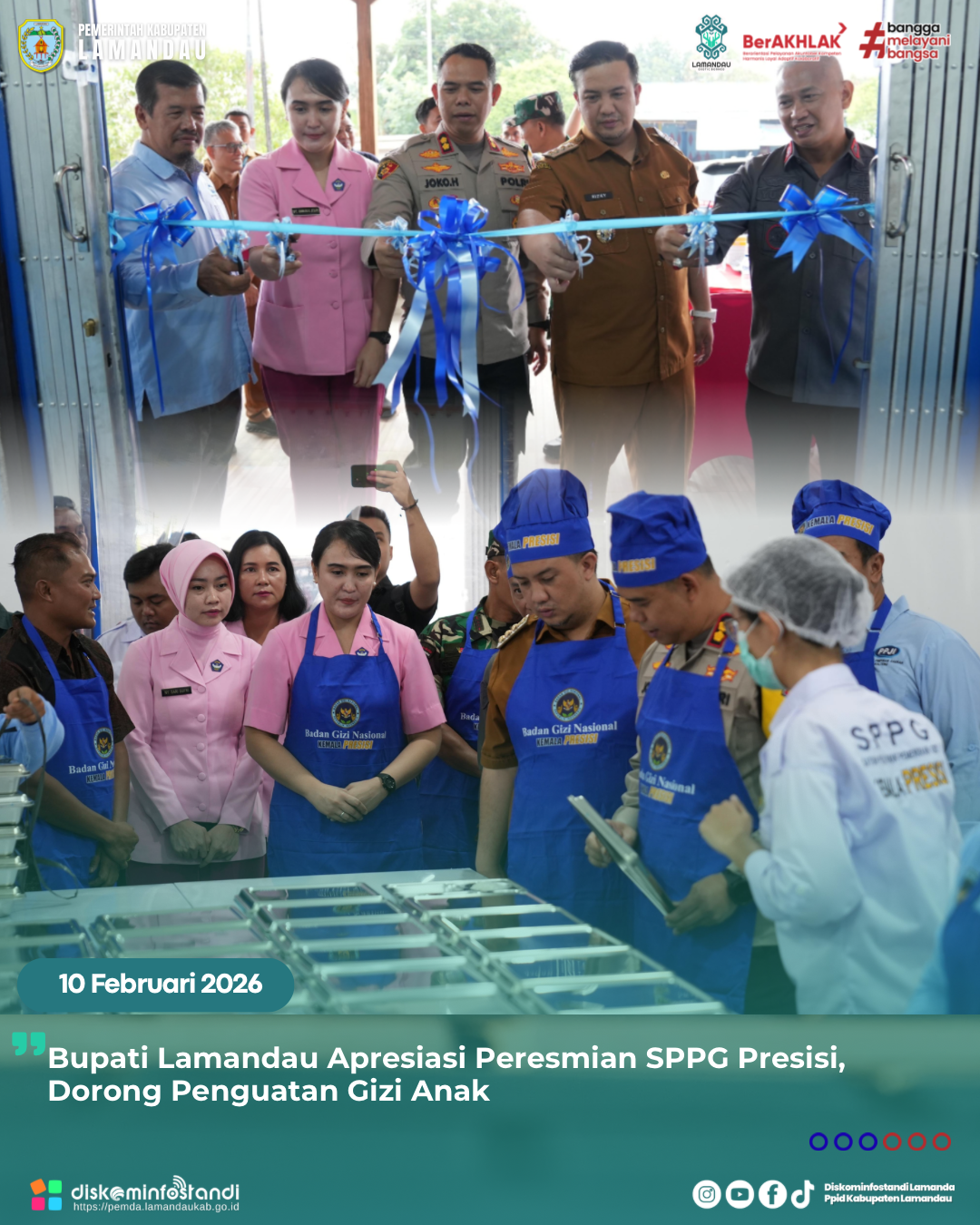 Bupati Lamandau, Rizky Aditya Putra, turut hadir langsung dalam peresmian tersebut dan menilai keberadaan SPPG menjadi langkah konkret dalam mendukung program strategis nasional sekaligus menjawab kebutuhan daerah di bidang peningkatan kualitas gizi masyarakat.