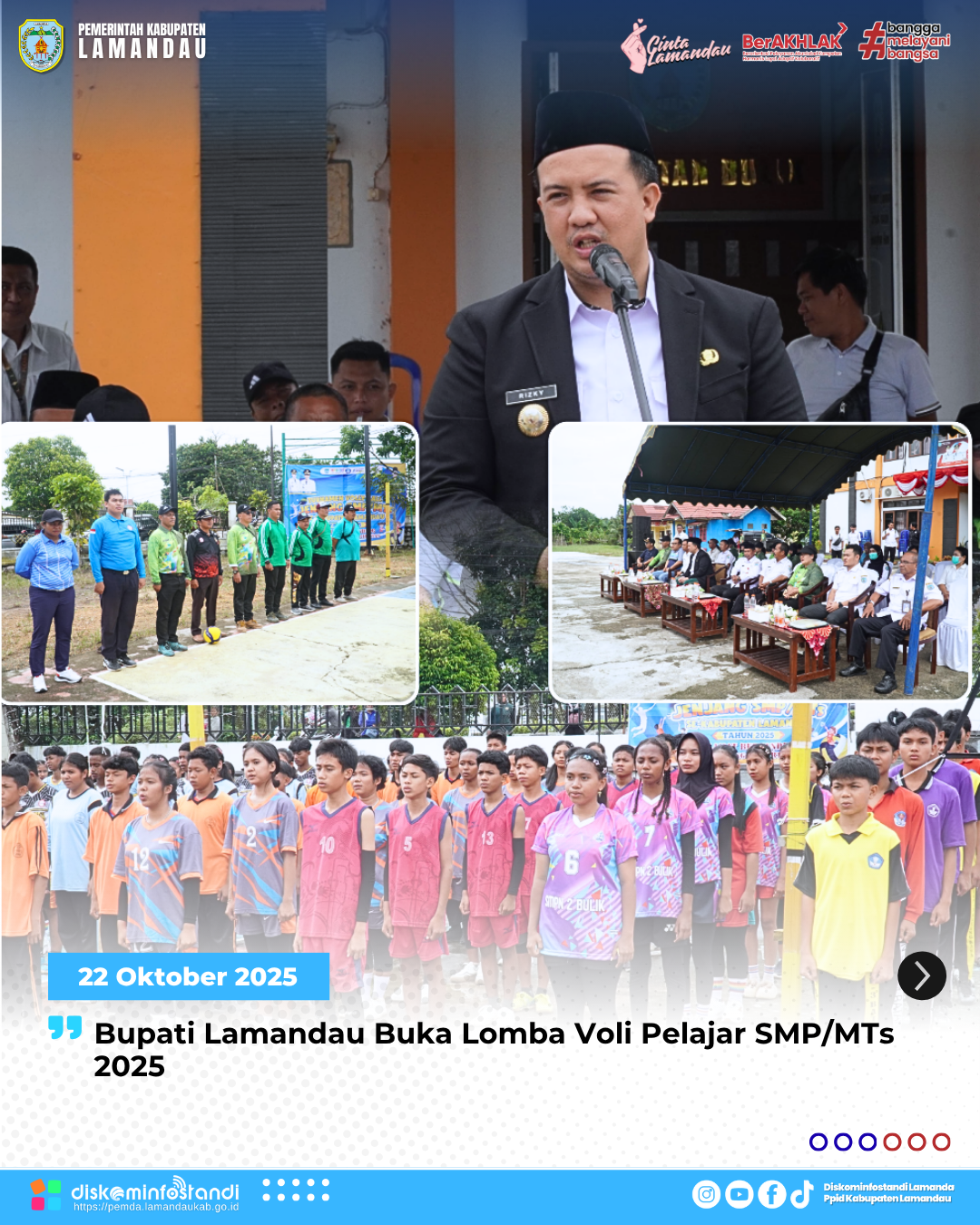 Nanga Bulik – Bupati Lamandau, Rizky Aditya Putra, secara resmi membuka Lomba Bola Voli tingkat SMP/MTs se-Kabupaten Lamandau tahun 2025 yang diselenggarakan oleh Dinas Pendidikan dan Kebudayaan (Disdikbud) Kabupaten Lamandau, di lapangan voli Kantor Kecamatan Bulik, Rabu (22/10).