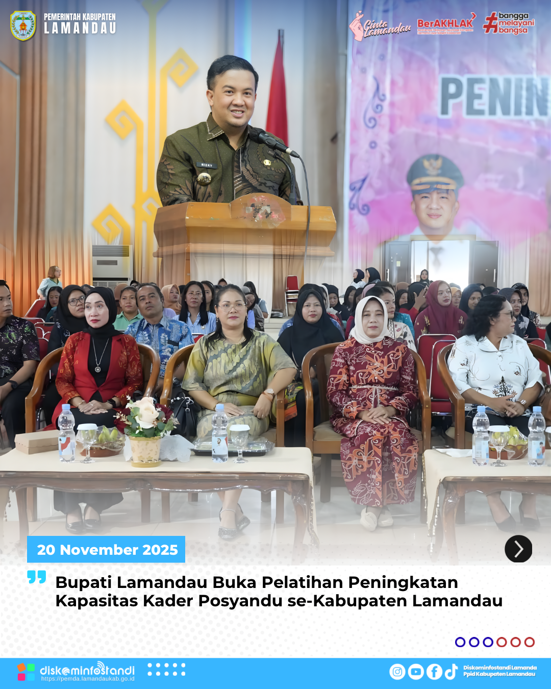 Nanga Bulik – Bupati Lamandau, Rizky Aditya Putra, secara resmi membuka Pelatihan Peningkatan Kapasitas Kader Posyandu se-Kabupaten Lamandau Tahun 2025, Kamis (20/11/2025) di GPU Lantang Torang, Nanga Bulik.