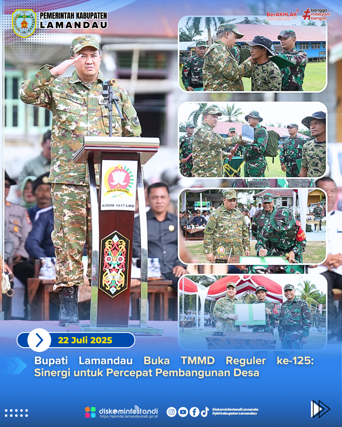 Batu Kotam – Bupati Lamandau, Rizky Aditya Putra, secara resmi membuka kegiatan TNI Manunggal Membangun Desa (TMMD) Reguler ke-125 Tahun 2025 di Desa Batu Kotam, Kecamatan Bulik, pada Rabu (23/7/2025). Program ini merupakan bentuk sinergi antara Pemerintah Kabupaten Lamandau dan Kodim 1017/Lamandau.