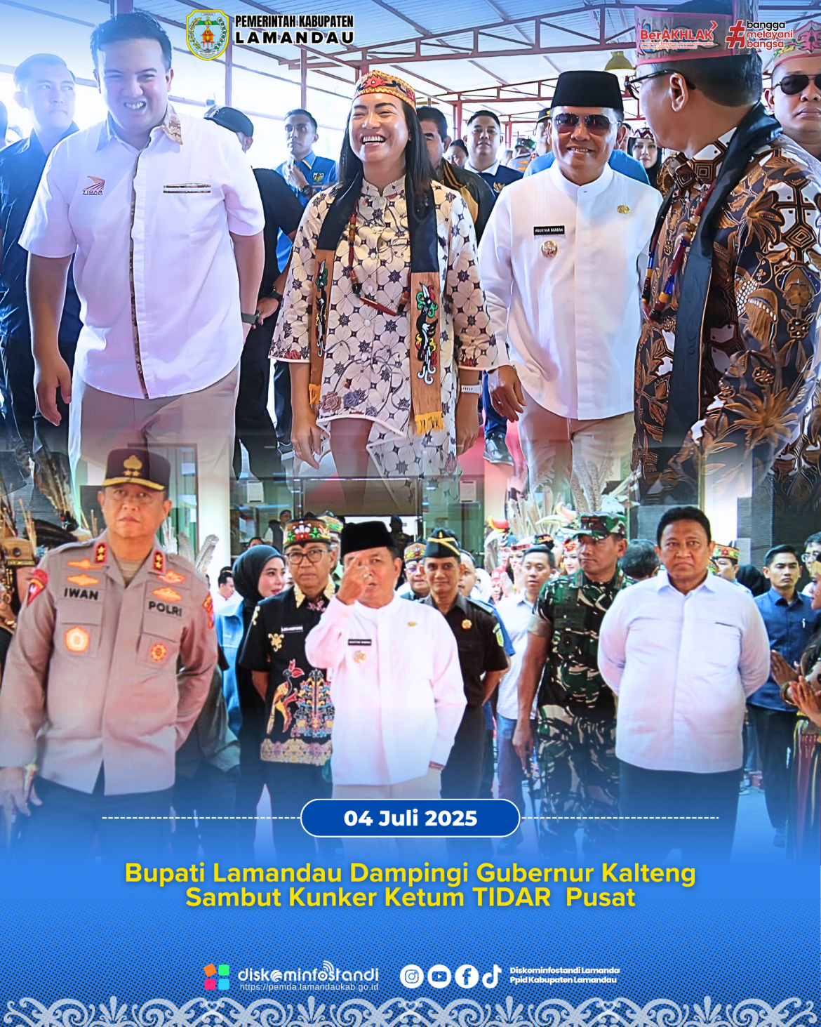 Bupati Lamandau, Rizky Aditya Putra, yang juga sekaligus ketua umum Tidar Kalteng mengucapkan selamat datang kepada rombongan ketua umum Tidar pusat di Provinsi Kalimantan Tengah khususnya di Bumi Tambun Bungai, serta mengatakan bahwa momentum ini menjadi pendorong untuk kaum muda mudi Kalimantan Tengah dan Kabupaten Lamandau. (Diskominfostandi)
