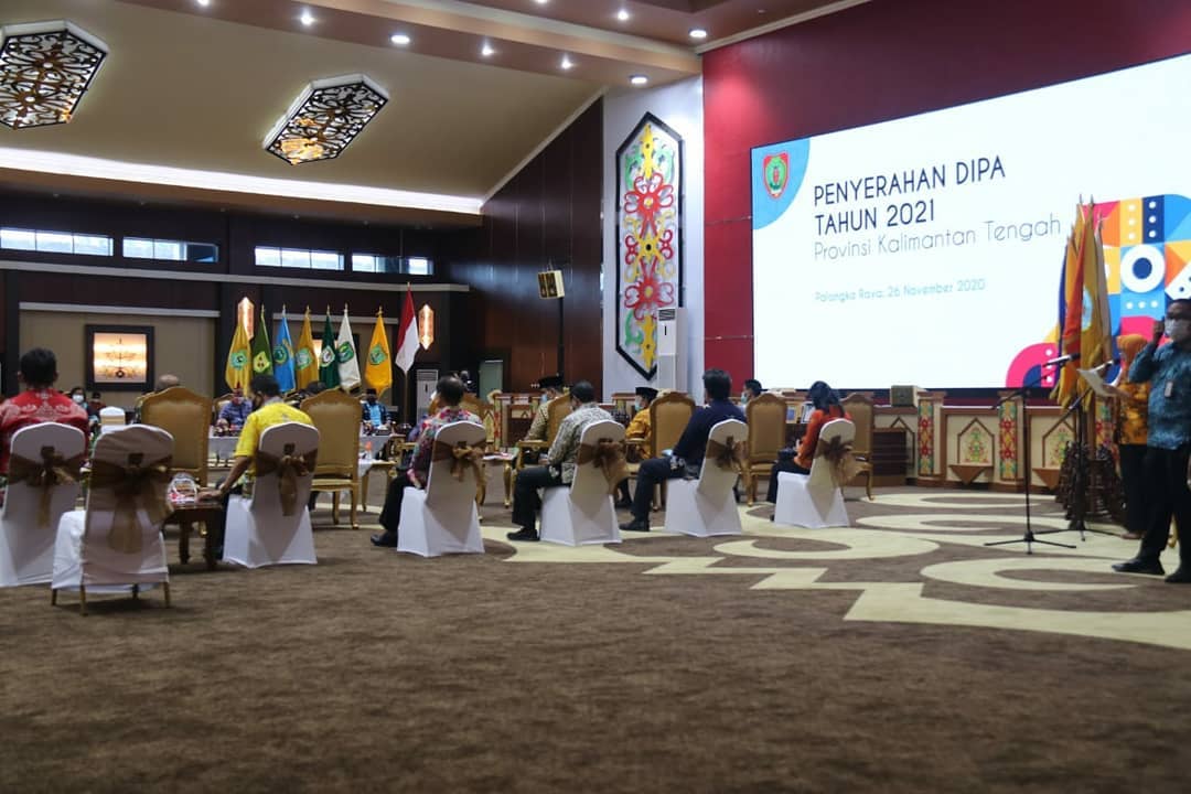 Plt. Gubernur Kalimantan Tengah (Kalteng) Habib Ismail Bin Yahya secara langsung menyerahkan Daftar Isian Pelaksanaan Anggaran (DIPA) dan rincian Transfer Ke Daerah dan Dana Desa (TKDD) Tahun 2021 kepada para Bupati/Walikota Se-Kalteng, Kepala Kanwil/ Kementerian/ LPNK/ Satuan Kerja Instansi Vertikal dan Kepala Perangkat Daerah Lingkup Pemerintah Provinsi (Pemprov) Kalteng bertempat di Aula Jayang Tingang Lt. II kantor Gubernur Kalteng.