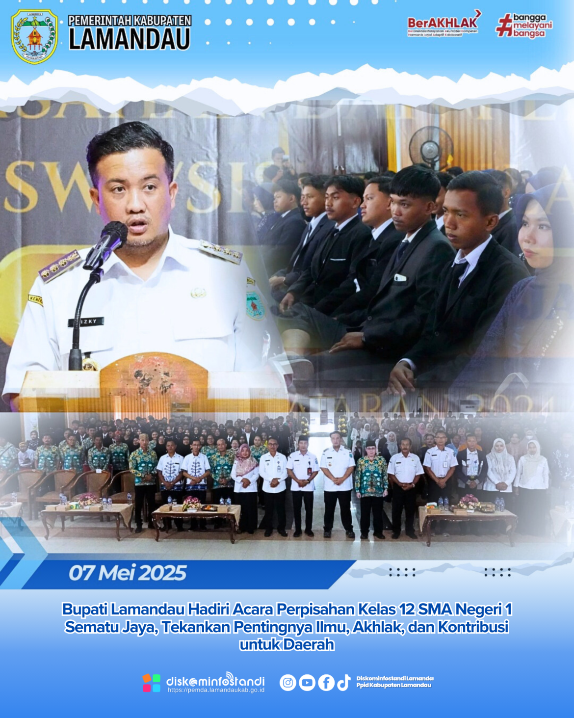 Lamandau, Sematu Jaya – Bupati Lamandau, Rizky Aditya Putra, menghadiri dan memberikan sambutan pada acara perpisahan siswa-siswi Kelas 12 SMA Negeri 1 Sematu Jaya, angkatan 2024/2025, Rabu (7/5).