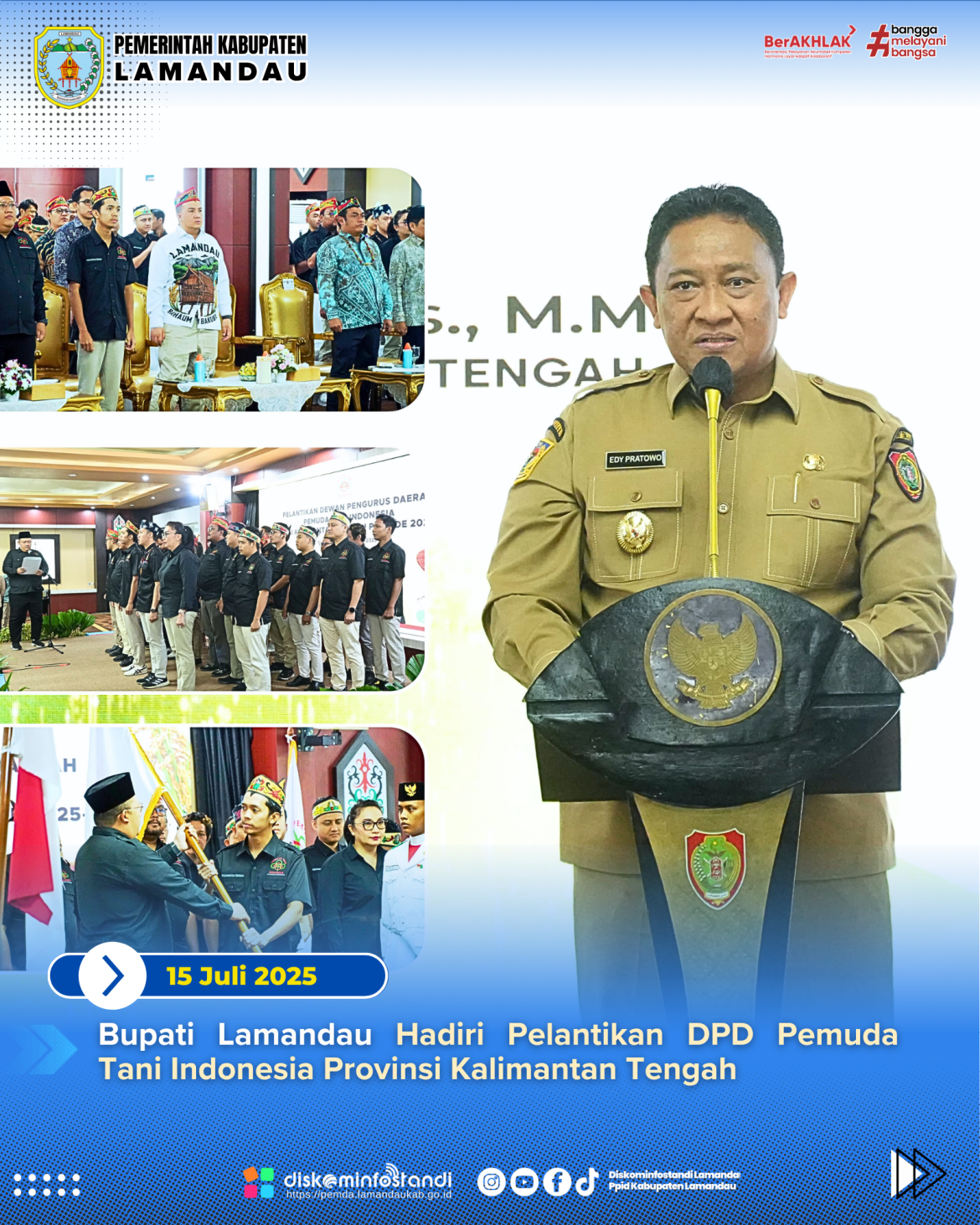 “Selamat kepada seluruh jajaran pengurus Pemuda Tani Indonesia Provinsi Kalimantan Tengah yang baru dilantik. Semoga ke depan dapat menjadi mitra strategis pemerintah daerah dalam meningkatkan produktivitas pertanian dan kemandirian pangan, khususnya di Kabupaten Lamandau,” kata Bupati Rizky. (Diskominfostandi)