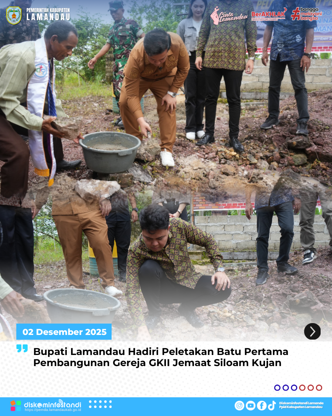 Kujan – Bupati Lamandau, Rizky Aditya Putra, menghadiri sekaligus melakukan peletakan batu pertama pembangunan Gereja Kemah Injil Indonesia (GKII) Jemaat Siloam Kujan pada Selasa (2/12/2025) di Gedung GKII Jemaat Siloam Kujan, Kecamatan Bulik. Acara ini juga turut dihadiri oleh Pastor David Herson bersama para tokoh gereja dan jemaat setempat.