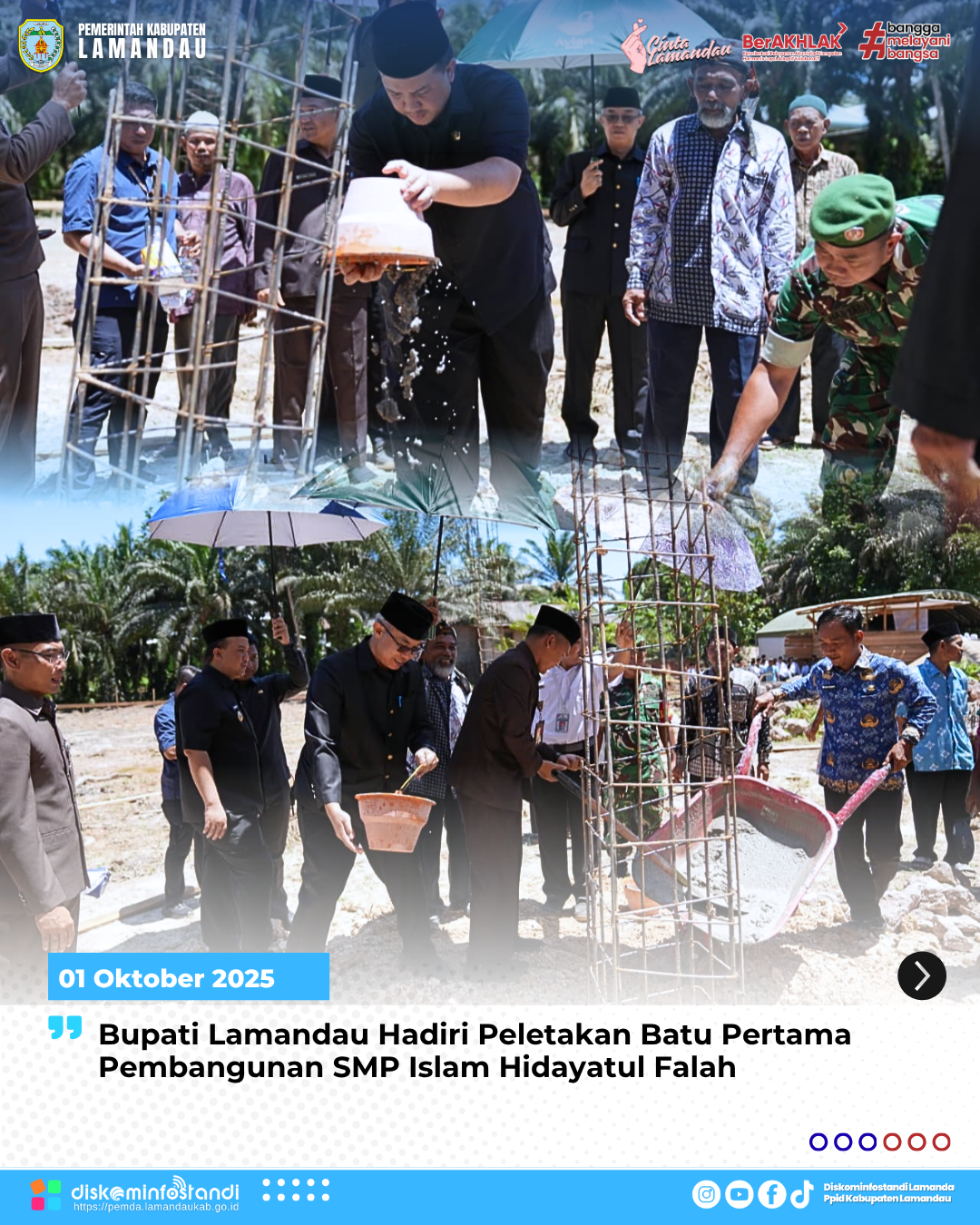 Bumi Agung – Bupati Lamandau, Rizky Aditya Putra, menghadiri peletakan batu pertama pembangunan gedung SMP Swasta Islam Hidayatul Falah di Desa Bumi Agung, Kecamatan Bulik, Rabu (1/10/2025).