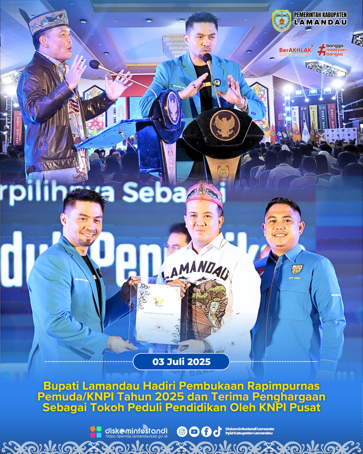 Di akhir acara Bupati Lamandau Rizki Aditya Putra, menjadi satu di antara sebelas tokoh lainnya yang menerima Penghargaan Indonesia Youth Award dari DPP KNPI sebagai tokoh peduli pendidikan.