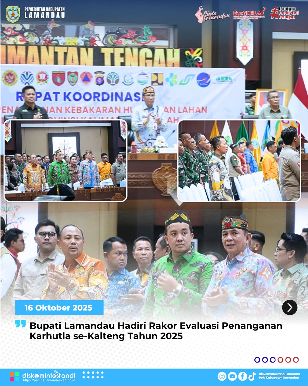 Palangka Raya – Bupati Lamandau, Rizky Aditya Putra menghadiri Rapat Koordinasi (Rakor) Evaluasi Penanganan Kebakaran Hutan dan Lahan (Karhutla) di wilayah Provinsi Kalimantan Tengah Tahun 2025, yang digelar di Aula Jayang Tingang, Kantor Gubernur Kalteng, Kamis (16/10/2025).