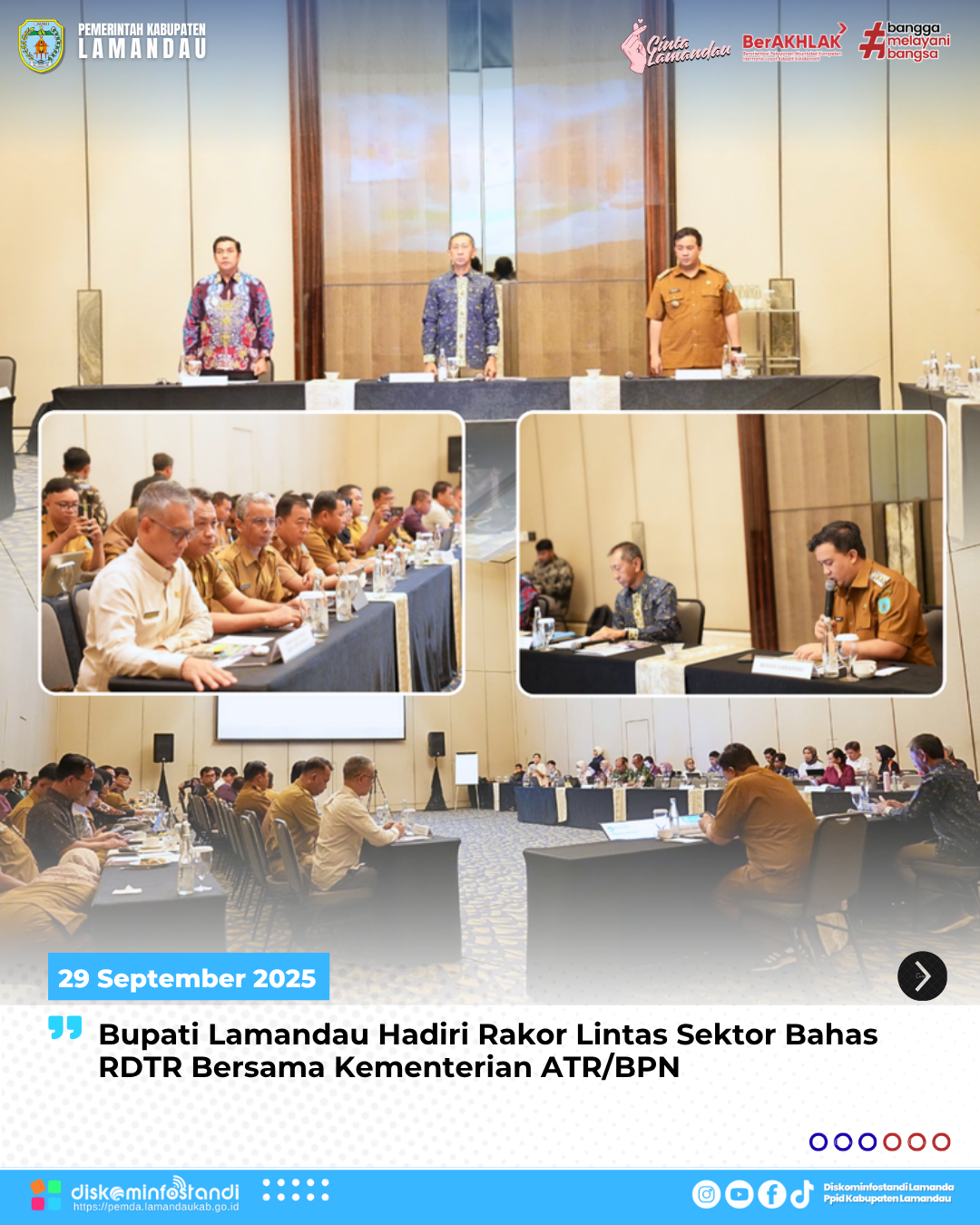 Jakarta – Bupati Lamandau, Rizky Aditya Putra, menghadiri Rapat Koordinasi (Rakor) Lintas Sektor yang diselenggarakan Kementerian Agraria dan Tata Ruang/Badan Pertanahan Nasional (ATR/BPN) melalui Direktorat Jenderal Tata Ruang. Kegiatan berlangsung di Sheraton Grand Jakarta Gandaria City Hotel, Jakarta Selatan, Senin (29/9/2025).