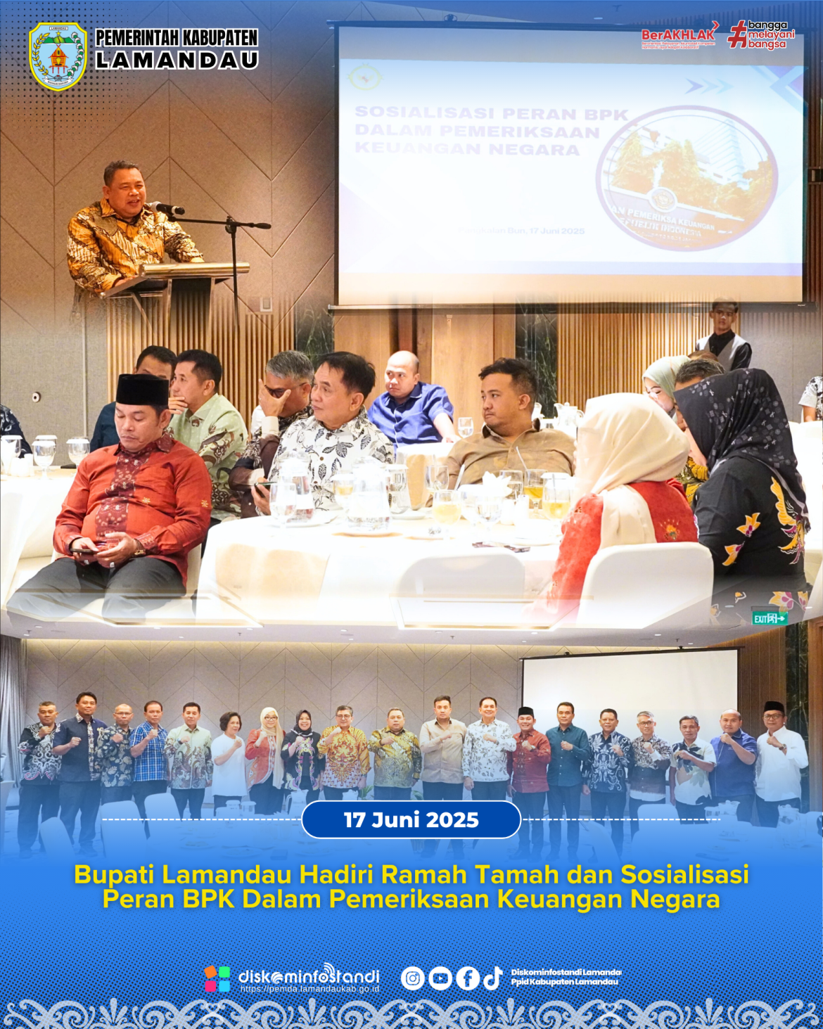 Pangkalan Bun – Bupati Lamandau Rizky Aditya Putra yang di dampingi Sekda Lamandau Muhamad Irwansyah, menghadiri Ramah Tamah Dan Sosialisasi Peran BPK Dalam Pemeriksaan Keuangan Negara Oleh BPK di Ball Rom Hotel Mercure Pangkalan Bun Kotawaringin Barat, Selasa Malam (17/6).