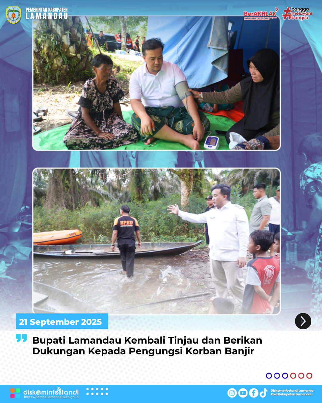 Bupati Rizky menegaskan bahwa Pemerintah Kabupaten Lamandau berkomitmen untuk terus memberikan bantuan dan pendampingan bagi warga terdampak banjir.