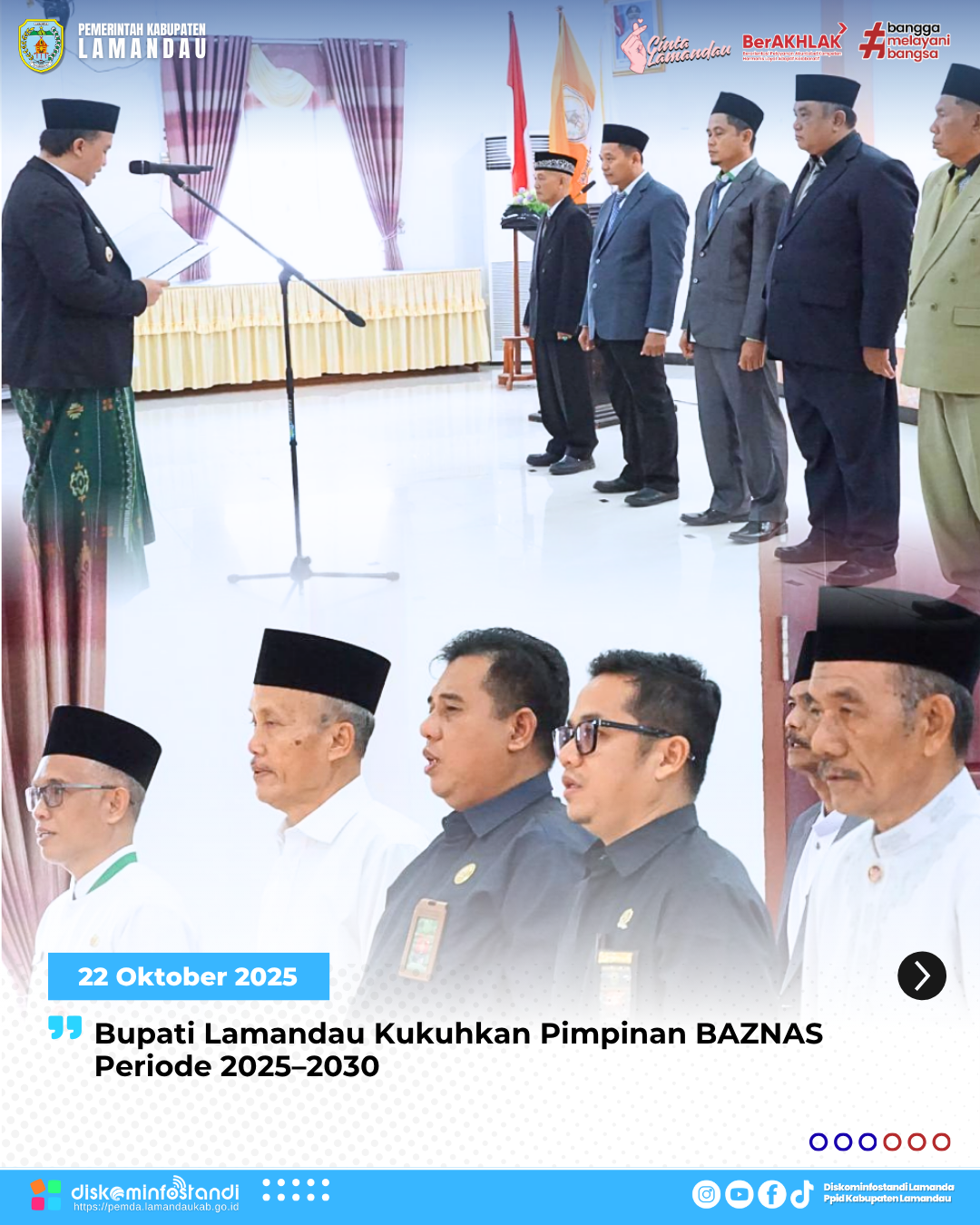 Nanga Bulik – Bupati Lamandau, Rizky Aditya Putra, secara resmi mengukuhkan pimpinan Badan Amil Zakat Nasional (BAZNAS) Kabupaten Lamandau periode 2025–2030, di Aula BPKPD Kabupaten Lamandau, Rabu (22/10).