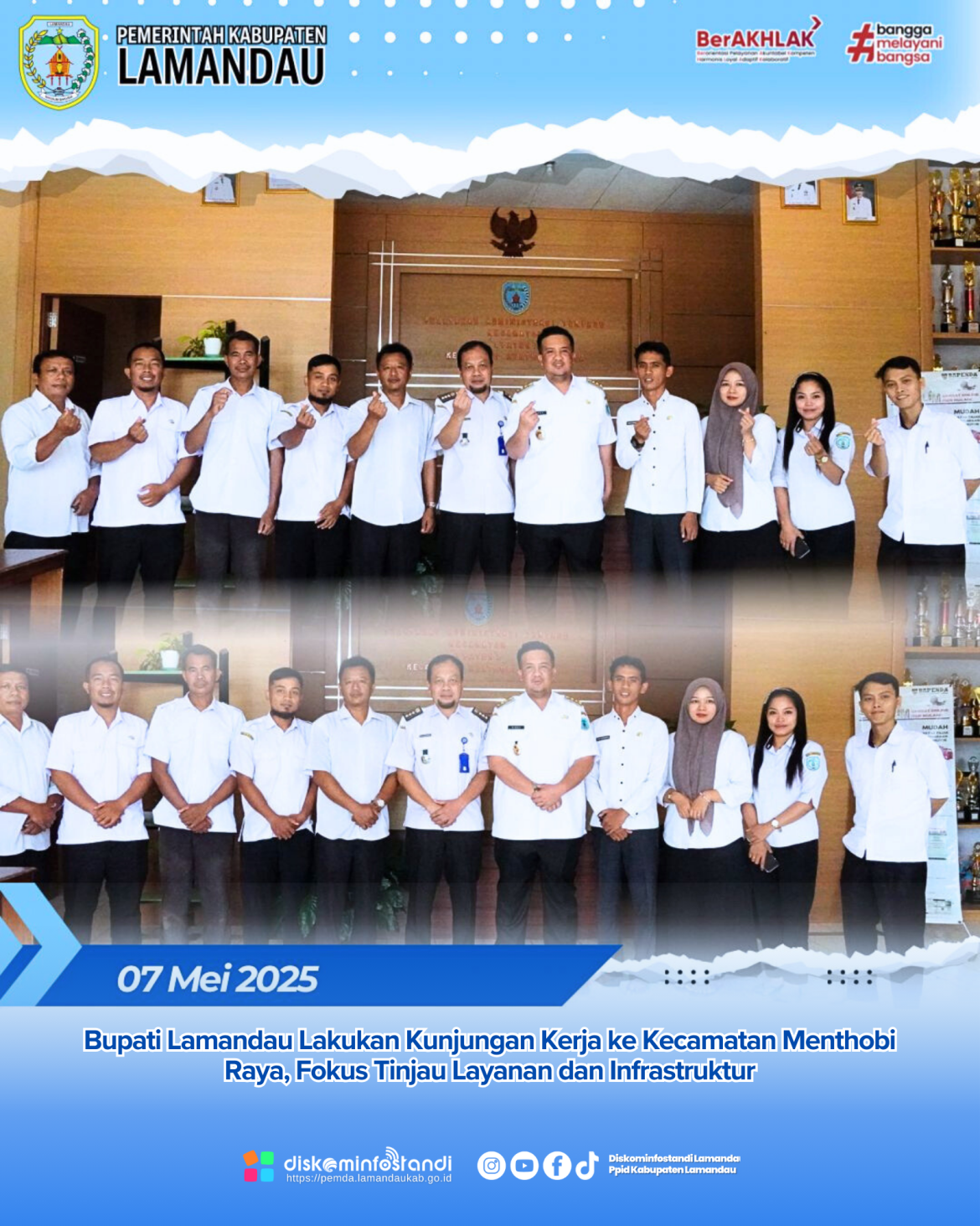 Menthobi Raya – Dalam rangka memperkuat koordinasi dan memastikan jalannya program prioritas pembangunan, Bupati Lamandau Rizky Aditya Putra, melaksanakan kunjungan kerja ke Kecamatan Menthobi Raya sebagai bagian dari agenda Bupati dalam menjangkau langsung masyarakat di wilayah kecamatan, Rabu (7/5).