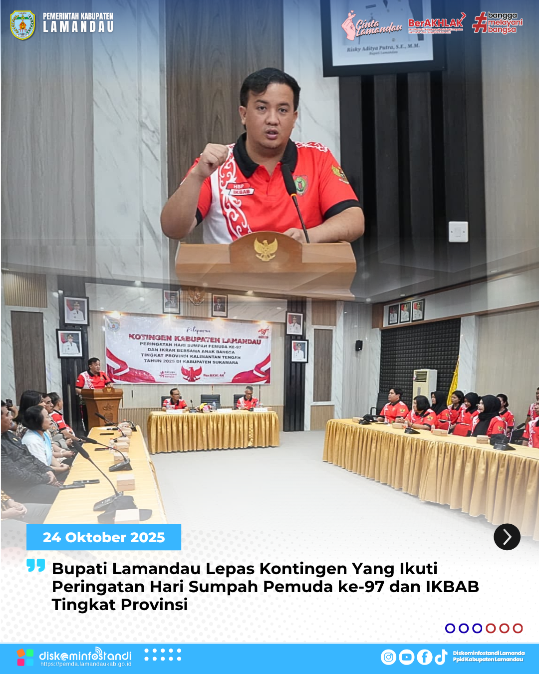 “Semangat Sumpah Pemuda harus terus dihidupkan dan diwariskan kepada generasi penerus, termasuk pemuda-pemudi Lamandau. Semangat ini menjadi motivasi untuk terus maju dan berkarya demi kejayaan bangsa,” ujar Bupati Rizky.