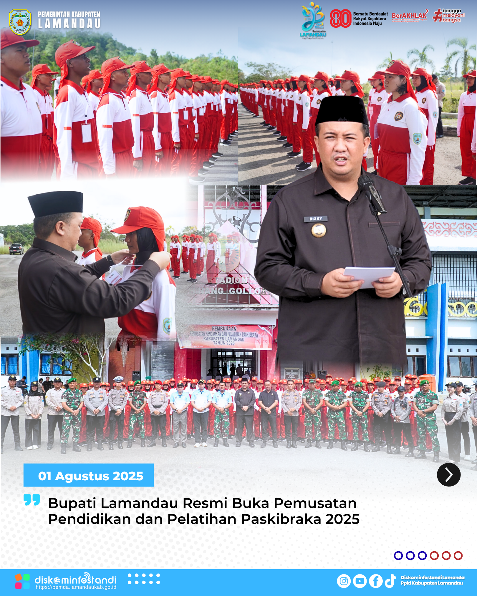 Nanga Bulik — Bupati Lamandau, Rizky Aditya Putra, secara resmi membuka kegiatan Pemusatan Pendidikan dan Pelatihan Pasukan Pengibar Bendera Pusaka (Paskibraka) Tingkat Kabupaten Lamandau Tahun 2025. Kegiatan ini dilaksanakan di Stadion Hinang Golloa, pada Jumat (1/8/2025).