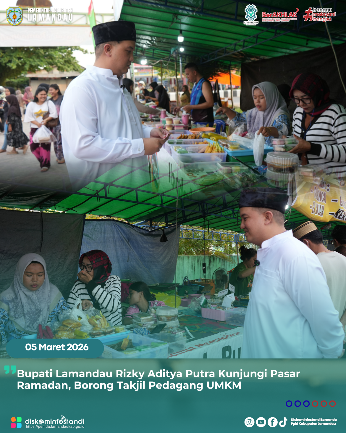 Dalam kesempatan itu, Bupati Rizky tampak berkeliling meninjau lapak para pedagang yang menjajakan berbagai jenis makanan dan minuman berbuka puasa. Ia juga menyempatkan diri membeli sejumlah takjil dari para pedagang yang berjualan di pasar tersebut.