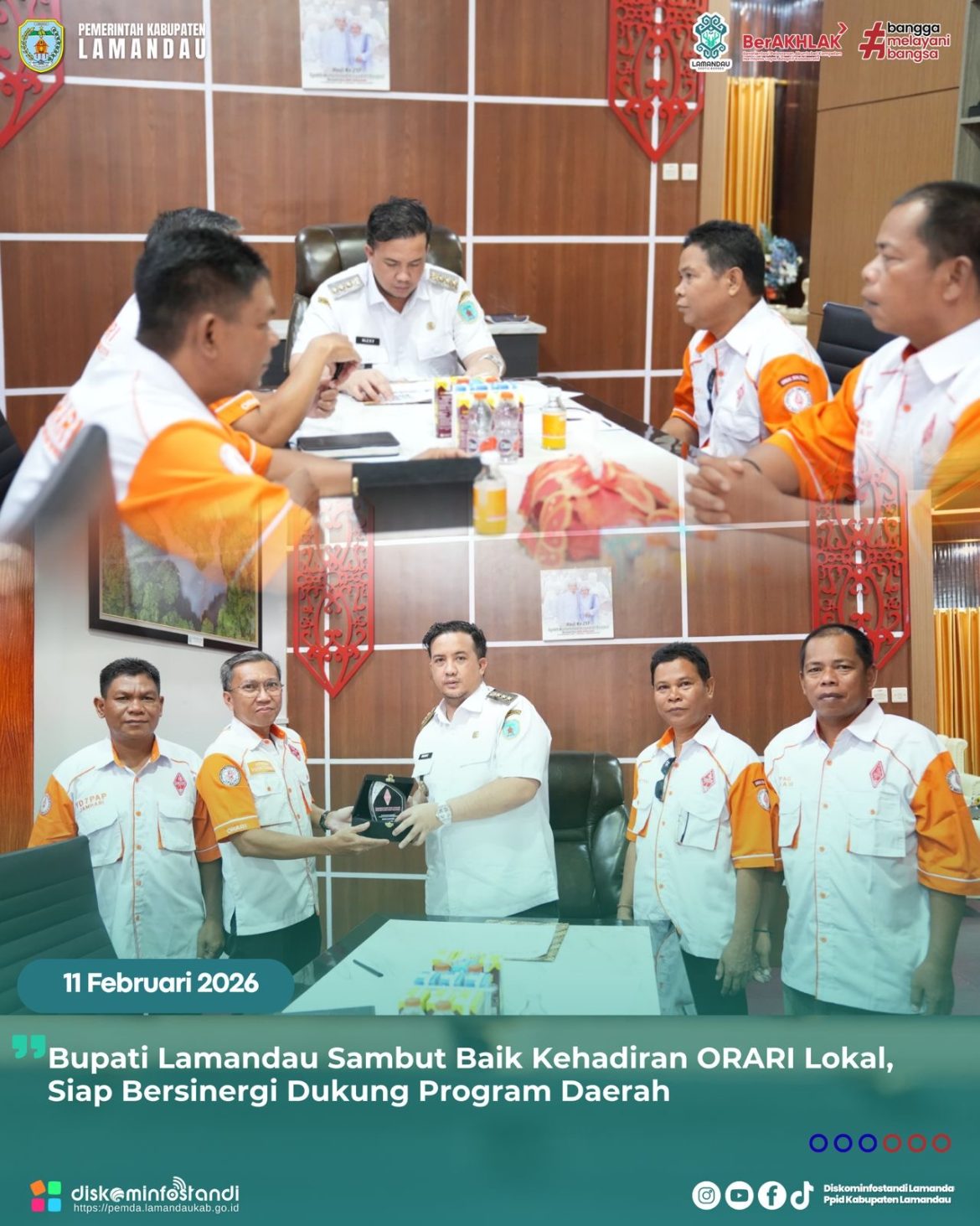 Nanga Bulik – Bupati Lamandau, Rizky Aditya Putra, menyambut baik keberadaan Organisasi Amatir Radio Indonesia (ORARI) Lokal Lamandau dan menyatakan kesiapan pemerintah daerah untuk bersinergi dengan organisasi tersebut. Hal tersebut disampaikan Bupati saat menerima jajaran pengurus ORARI Lokal Lamandau di ruang kerjanya, Rabu (11/2).