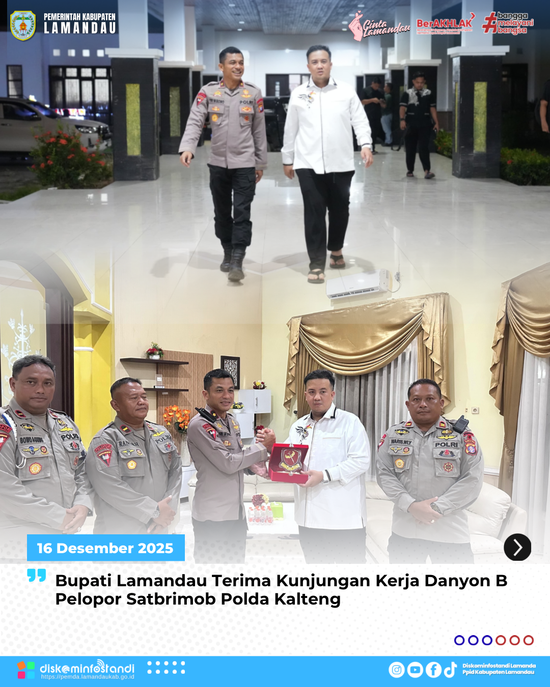 Kunjungan kerja tersebut dilaksanakan dalam rangka silaturahmi sekaligus memperkuat koordinasi dan sinergi antara Pemerintah Kabupaten Lamandau dengan jajaran Kepolisian, khususnya Satuan Brimob Polda Kalimantan Tengah.
