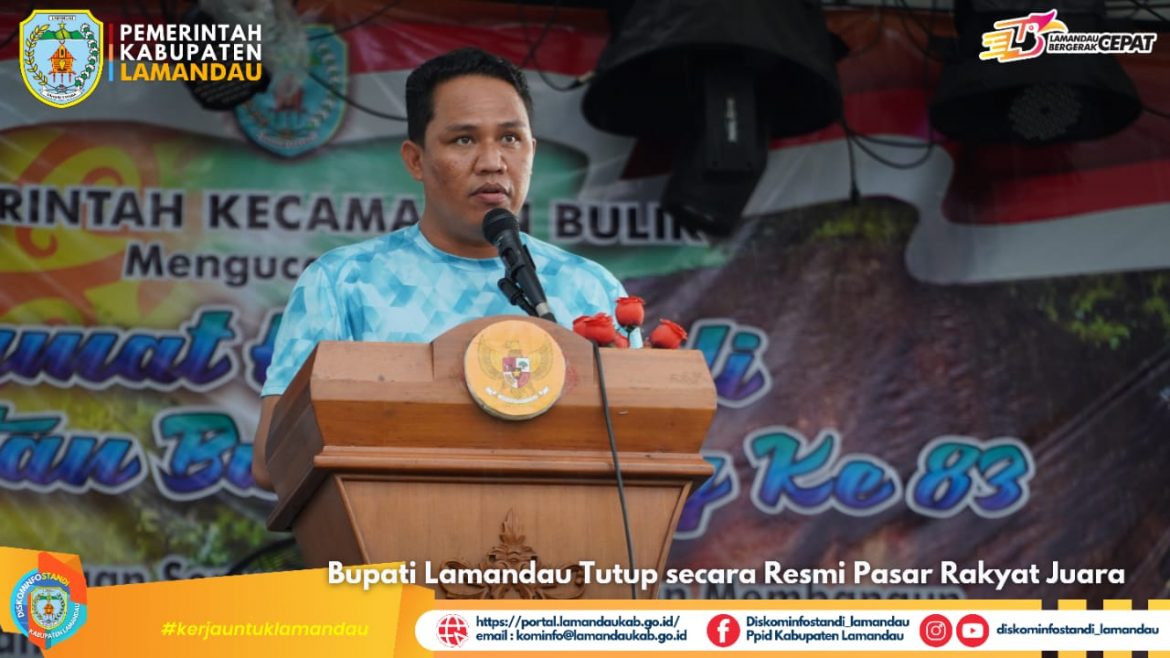 Lamandau Bergerak Cepat (LBC) – Pasar Rakyat “JUARA” yang telah dilaksanakan kurang lebih tujuh hari sejak dibukanya pada 20 Juli lalu, dalam rangka Hari Jadi Kecamatan Bulik yang ke- 83 Resmi Ditutup, Rabu (27/7).