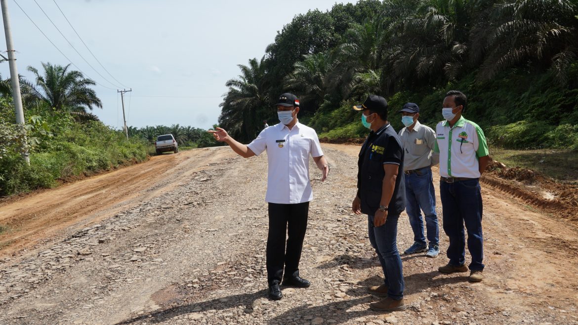 “saya menekankan kepada Perkebunan TBS dan Pertambangan untuk ikut berkontribusi dan berpartisipasi dalam perbaikan ruas jalan yang rusak ini, karena sedikit banyak kerusakan ini akibat tingginya mobilisasi angkutan produksi, tutup Bupati.