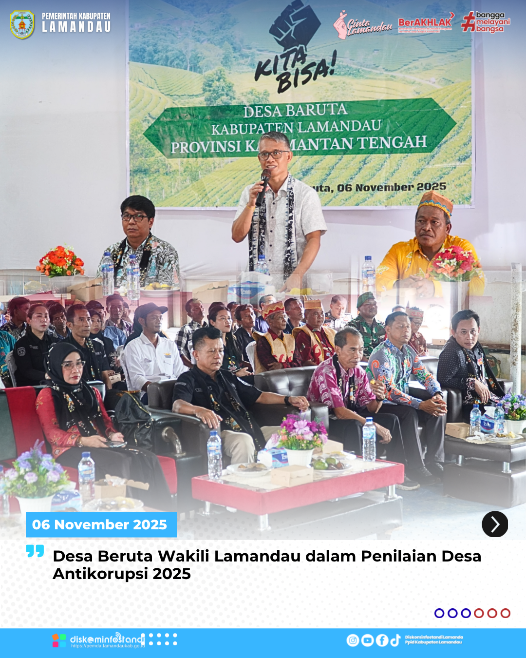 “Kita patut berbangga karena dari sekian banyak desa di Kalimantan Tengah, Desa Beruta terpilih mewakili Kabupaten Lamandau. Ini bukan hanya penghargaan, tetapi juga amanah untuk menunjukkan bahwa pemerintahan desa dapat dikelola secara bersih, transparan, dan berintegritas,” ujarnya.