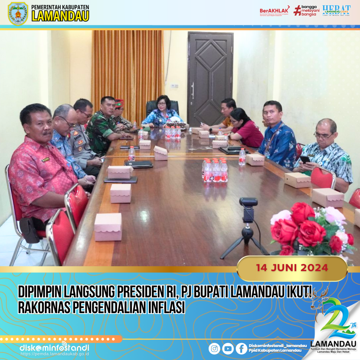 Nanga Bulik – Pj Bupati Lamandau Lilis Suriani mengikuti Rakornas Pengendalian Inflasi bersama Kemendagri melalui Zoom Meeting, di Ruang Rapat Bupati Lamandau, Jum’at (14/6).