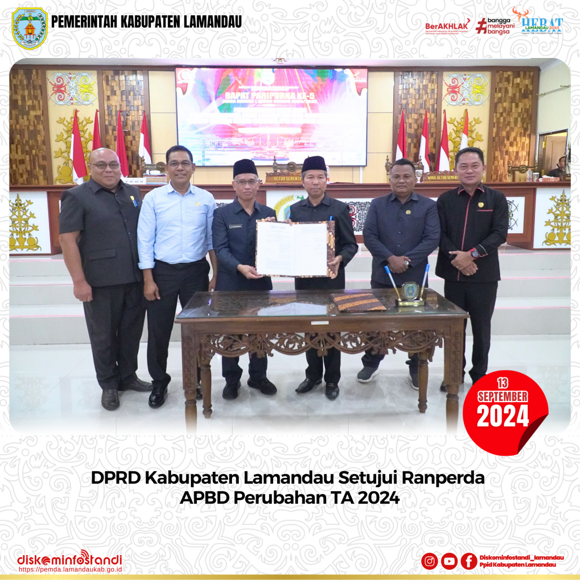 “Dengan adanya persetujuan bersama menandakan bahwa Ranperda APBD perubahan Kabupaten Lamandau tahun anggaran 2024 sudah melalui mekanisme pembahasan yang telah diatur oleh perundang-undangan yang berlaku”, kata Sekretaris Daerah Muhamad Irwansyah mewakili Pj Bupati Lamandau saat membacakan pidato penutup.