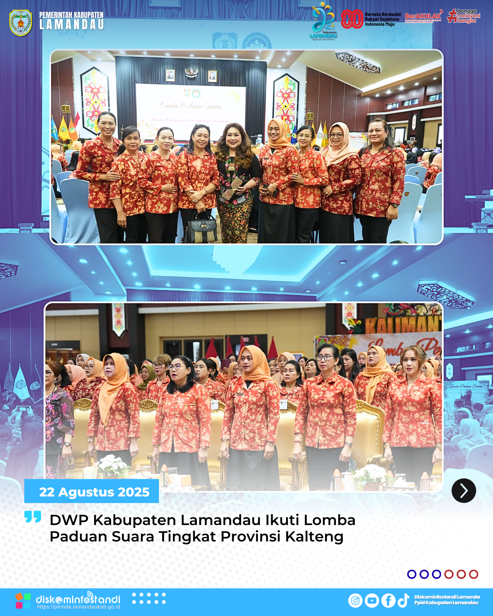 Palangka Raya – Dharma Wanita Persatuan (DWP) Kabupaten Lamandau turut ambil bagian dalam Lomba Paduan Suara Dharma Wanita Persatuan Tingkat Provinsi Kalimantan Tengah Tahun 2025 yang digelar di Aula Bapperida Kalimantan Tengah, Jumat (22/8/2025).