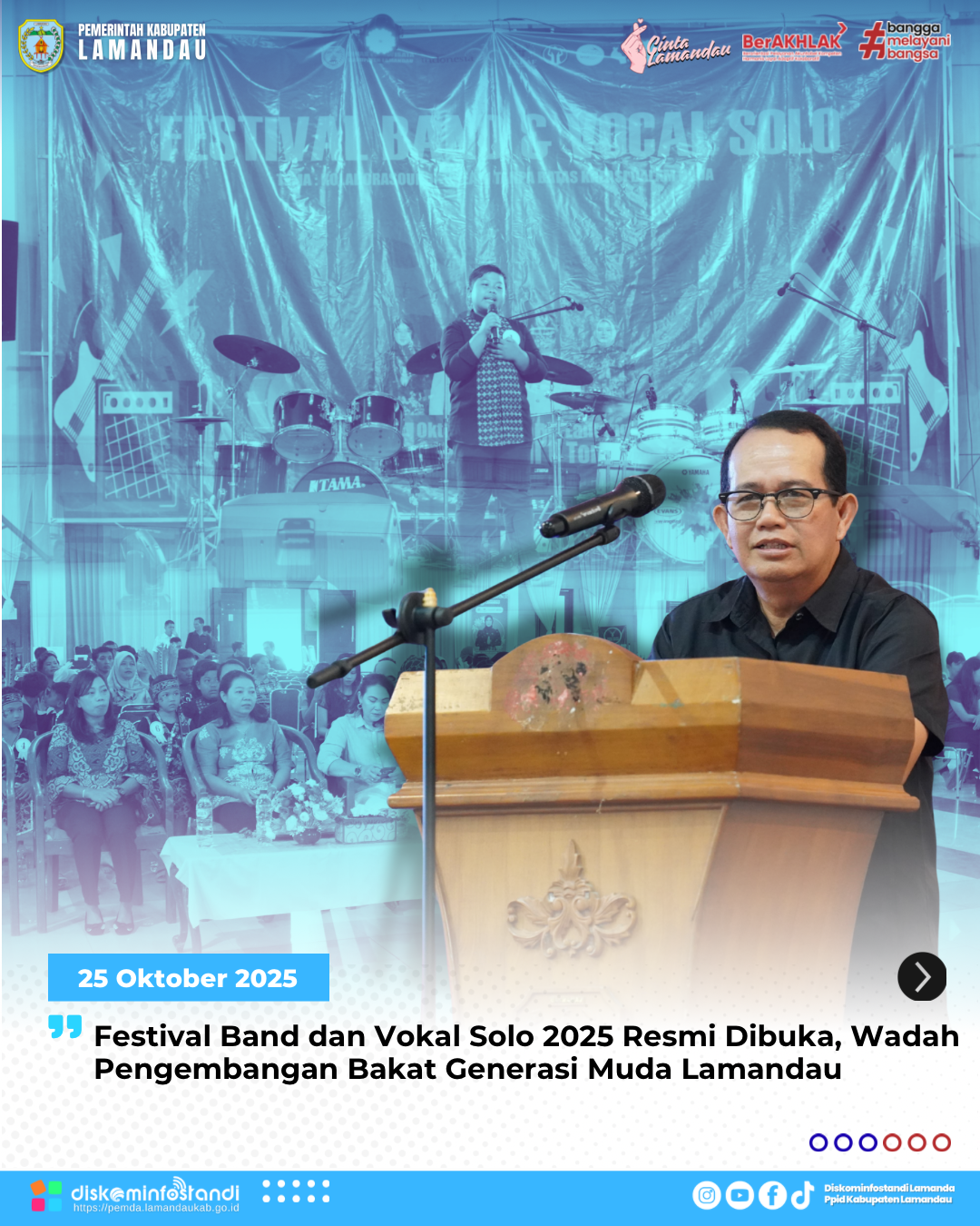 Nanga Bulik – Pemerintah Kabupaten Lamandau melalui Dinas Pariwisata kembali menggelar Festival Band dan Vokal Solo Kabupaten Lamandau Tahun 2025, sebagai wadah bagi generasi muda untuk menyalurkan bakat serta mengekspresikan kreativitas di bidang musik.
