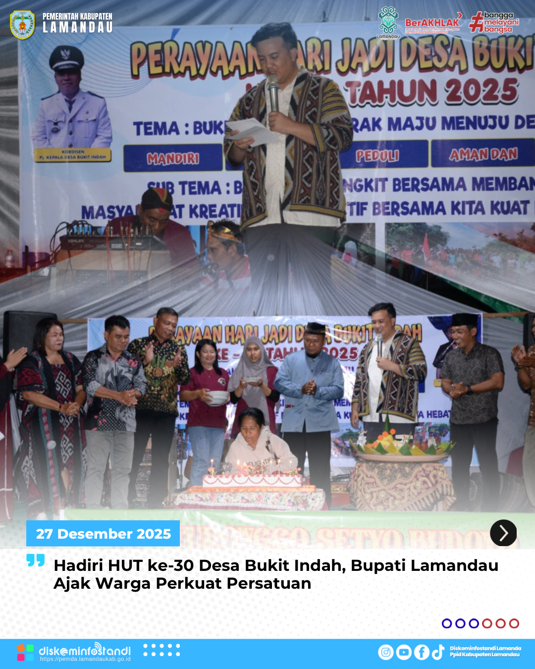 Hal tersebut disampaikan saat menghadiri acara syukuran peringatan Hari Jadi ke-30 Desa Bukit Indah yang digelar di Balai Desa Bukit Indah, Kecamatan Bulik, Sabtu malam (27/12/2025).