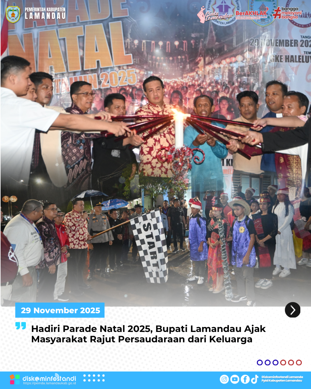 Ia juga menyampaikan bahwa Lamandau sebagai daerah yang majemuk selama ini mampu menjaga toleransi dengan sangat baik. Menurutnya, Parade Natal merupakan wujud nyata kebersamaan masyarakat lintas gereja, komunitas, dan latar belakang untuk terus menyuarakan damai, kasih, serta persaudaraan di Bumi Bahaum Bakuba.