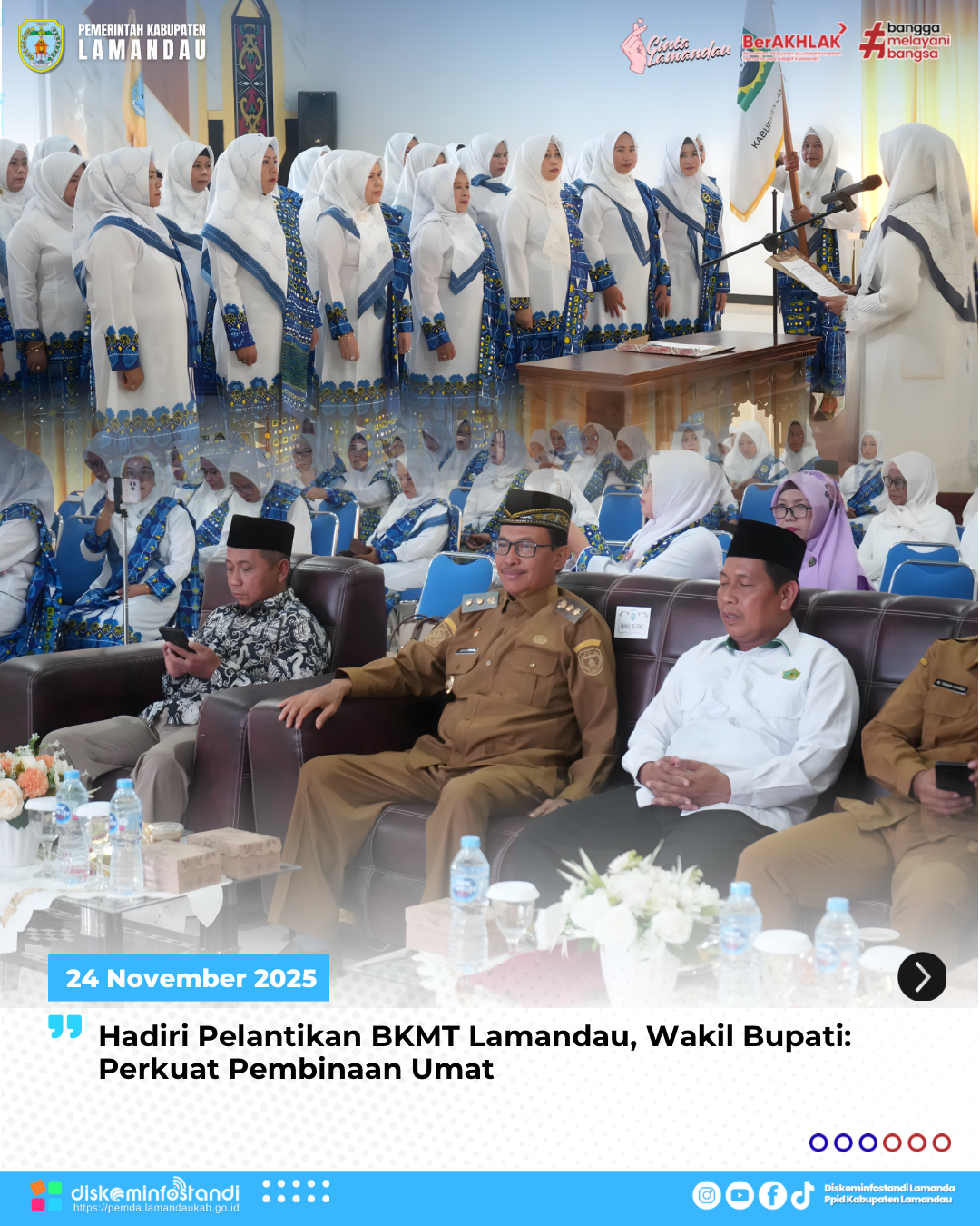 Nanga Bulik – Wakil Bupati Lamandau, Abdul Hamid, menghadiri acara Pengukuhan/Pelantikan Pengurus Daerah Badan Kontak Majelis Taklim (BKMT) Kabupaten Lamandau Periode 2025–2030, Senin (24/11/2025) di Aula Bappedalitbang Kabupaten Lamandau.