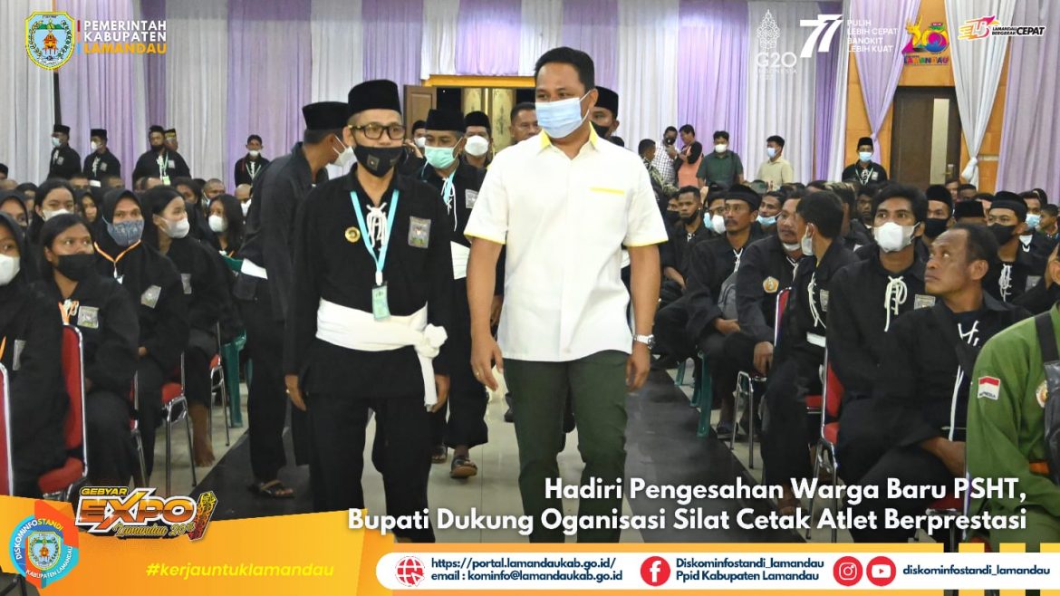 Lamandau Bergerak Cepat (LBC) – Bupati Lamandau, Hendra Lesmana hadiri pengesahan warga baru tingkat I Persaudaraan Setia Hati Terate (PSHT) Cabang Lamandau – Pusat Madiun tahun 2022 di Gedung Pertemuan Umum (GPU) Lantang Torang Nanga Bulik, Sabtu (13/8) malam.