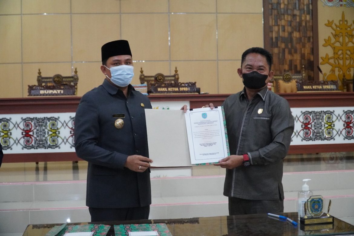 Lamandau Bergerak Cepat (LBC) – Bupati Lamandau Hendra Lesmana di dampingi Wakil Bupati Riko Porwanto hadiri Rapat Paripurna 4 Masa Sidang II Tahun 2021/2022 DPRD Kabupaten Lamandau di ruang rapat DPRD Kabupaten Lamandau, Senin (11/04).