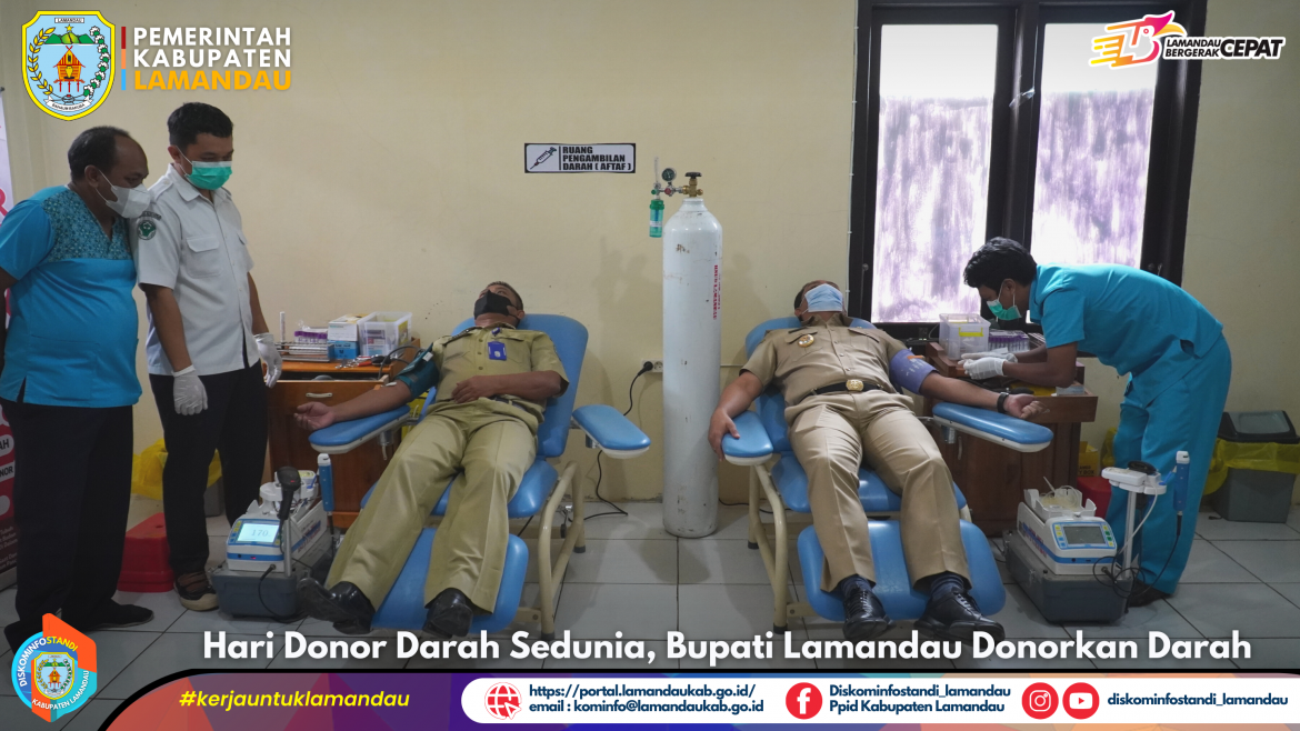 Lamandau Bergerak Cepat (LBC) – Dalam rangka memperingati Hari Donor Darah Sedunia yang jatuh 14 Juni 2022, Bupati Lamandau Hendra Lesmana turut ambil bagian mendonorkan darah, Senin (14/6) di Unit Transfusi Darah Rumah Sakit (UTDRS) Rumah Sakit Umum Daerah (RSUD) Lamandau.