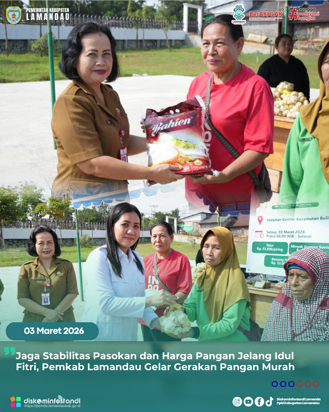 Melalui pelaksanaan Gerakan Pangan Murah ini, pemerintah daerah berharap masyarakat dapat menjalankan ibadah puasa Ramadhan hingga merayakan Idul Fitri dengan lebih tenang tanpa terbebani lonjakan harga kebutuhan pokok. (Diskominfostandi)