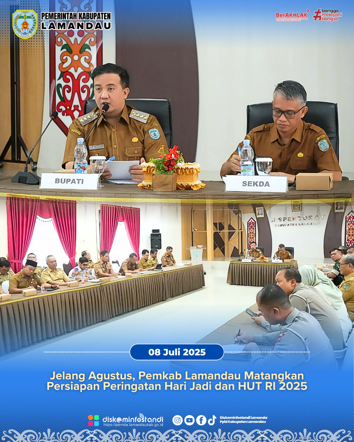 “Dengan semangat gotong royong, kita berharap seluruh rangkaian peringatan Hari Jadi dan HUT RI 2025 tidak hanya berlangsung meriah, tetapi juga memberi dampak positif dan kebanggaan bagi seluruh masyarakat Kabupaten Lamandau”, kata Bupati. (Diskominfostandi)