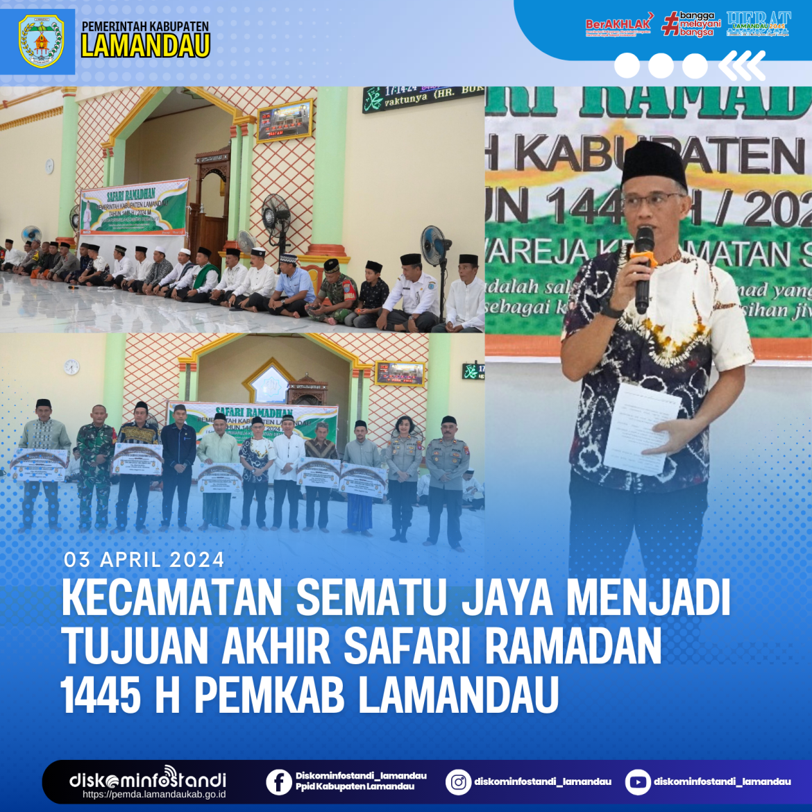Nanga Bulik – Pada sepuluh hari terakhir Ramadan 1445 Hijriah kali ini, Pemerintah Kabupaten Lamandau akhirnya merampungkan kegiatan Safari Ramadan yang rutin digelar setiap tahunnya, dan Kecamatan Sematu Jaya menjadi Kecamatan terakhir pada safari ramadan 1445Hijriah ini.