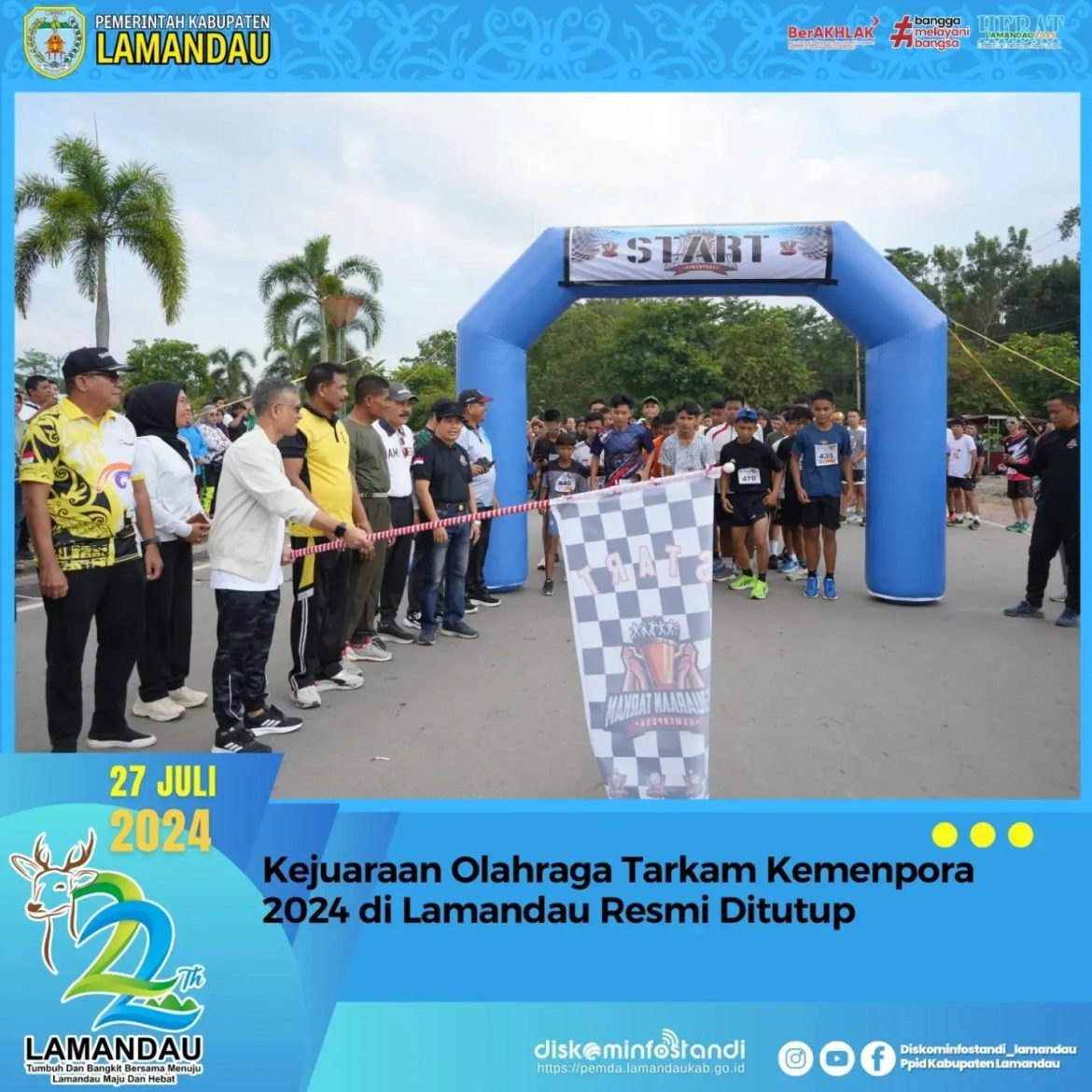 Nanga Bulik – Kejuaraan Olahraga Antar Kampung (Tarkam) Kementerian Pemuda dan Olahraga (Kemenpora) tahun 2024 yang digelar di Kabupaten Lamandau resmi ditutup oleh Sekretaris Daerah Kabupaten Lamandau, Sabtu (27/7) di Bundaran Rusa Nanga Bulik.