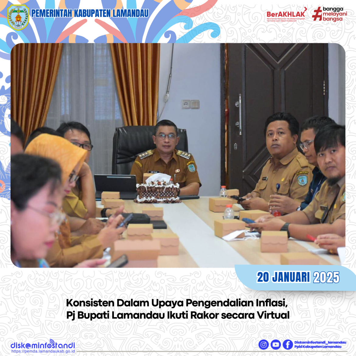 Nanga Bulik – Pj Bupati Lamandau, Said Salim, kembali mengikuti Rapat Koordinasi (Rakor) Pengendalian Inflasi Tahun 2025 secara virtual, di Ruang Rapat Bupati Lamandau, Senin (20/1).