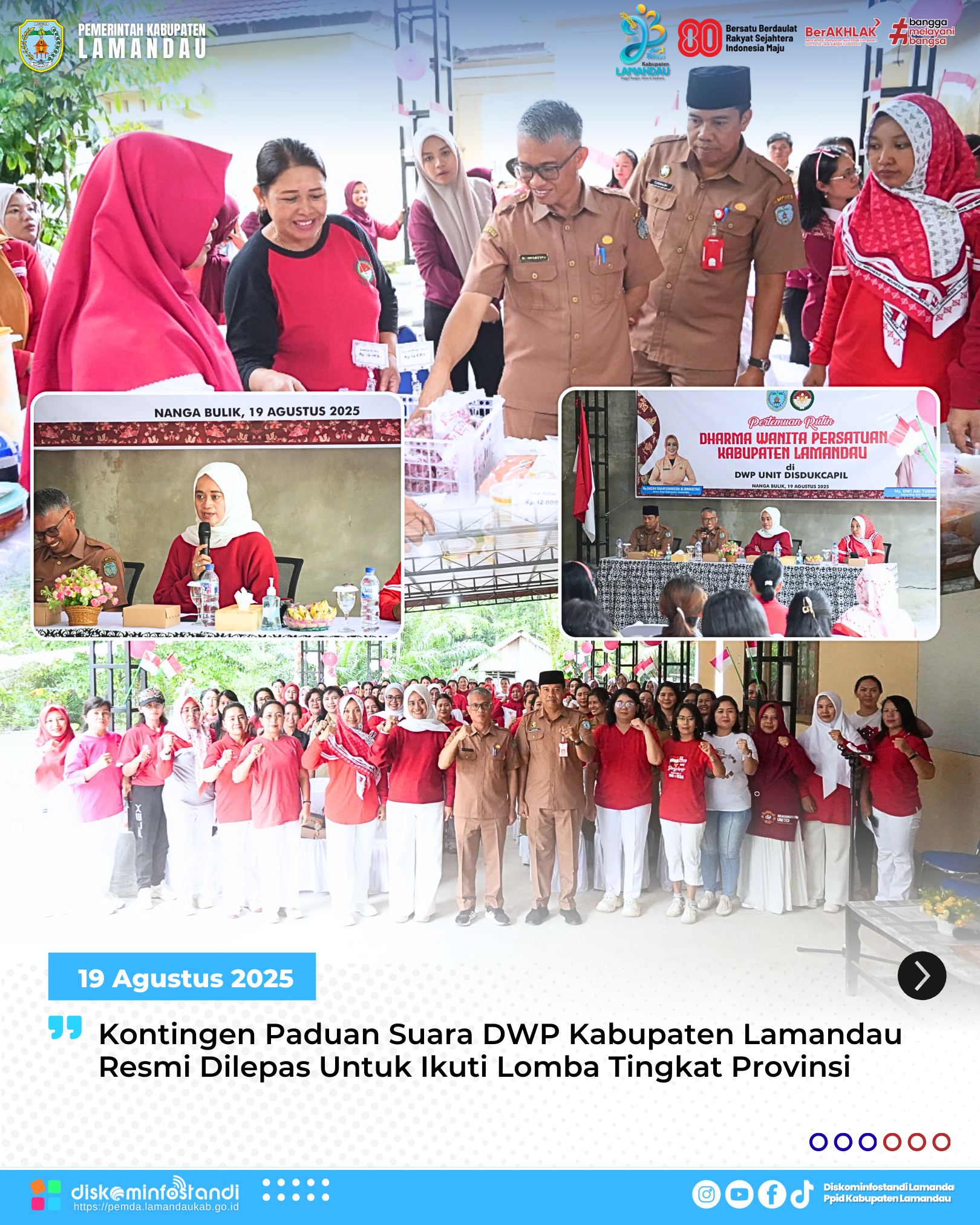 “Kami bangga DWP Kabupaten Lamandau dapat ikut berpartisipasi dalam lomba ini. Jaga kesehatan, jaga suara, dan tampilkan penampilan terbaik agar hasil yang diperoleh maksimal. Semangat, ibu-ibu, semoga kita bisa membawa pulang juara,” ujar Sekda memberikan motivasi.