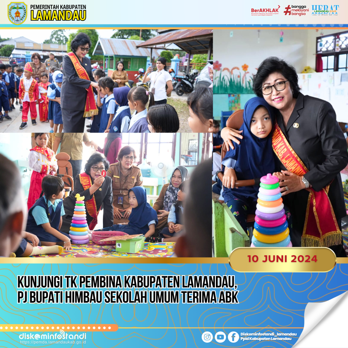 Nanga Bulik – Pj Bupati Lamandau Lilis Suriani sekaligus Selaku Bunda PAUD Kabupaten Lamandau, mengunjungi TK Negeri Pembina Kabupaten Lamandau di Jalan Melati, Senin (10/6).