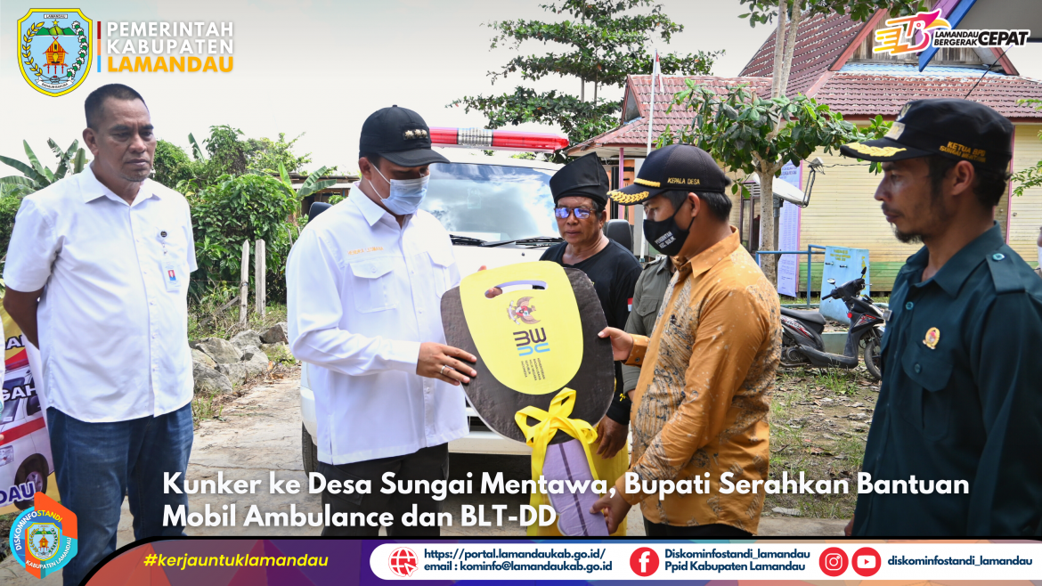 Dalam kesempatan tersebut, Bupati menyerahkan Bantuan 1 unit mobil Ambulance kepada Desa Sungai Mentawa yang berasal dari Program Kemitraan dan Bina Lingkungan Aspirasi Drs. H. Muhtarudin, anggota DPR RI Kalimantan Tengah.