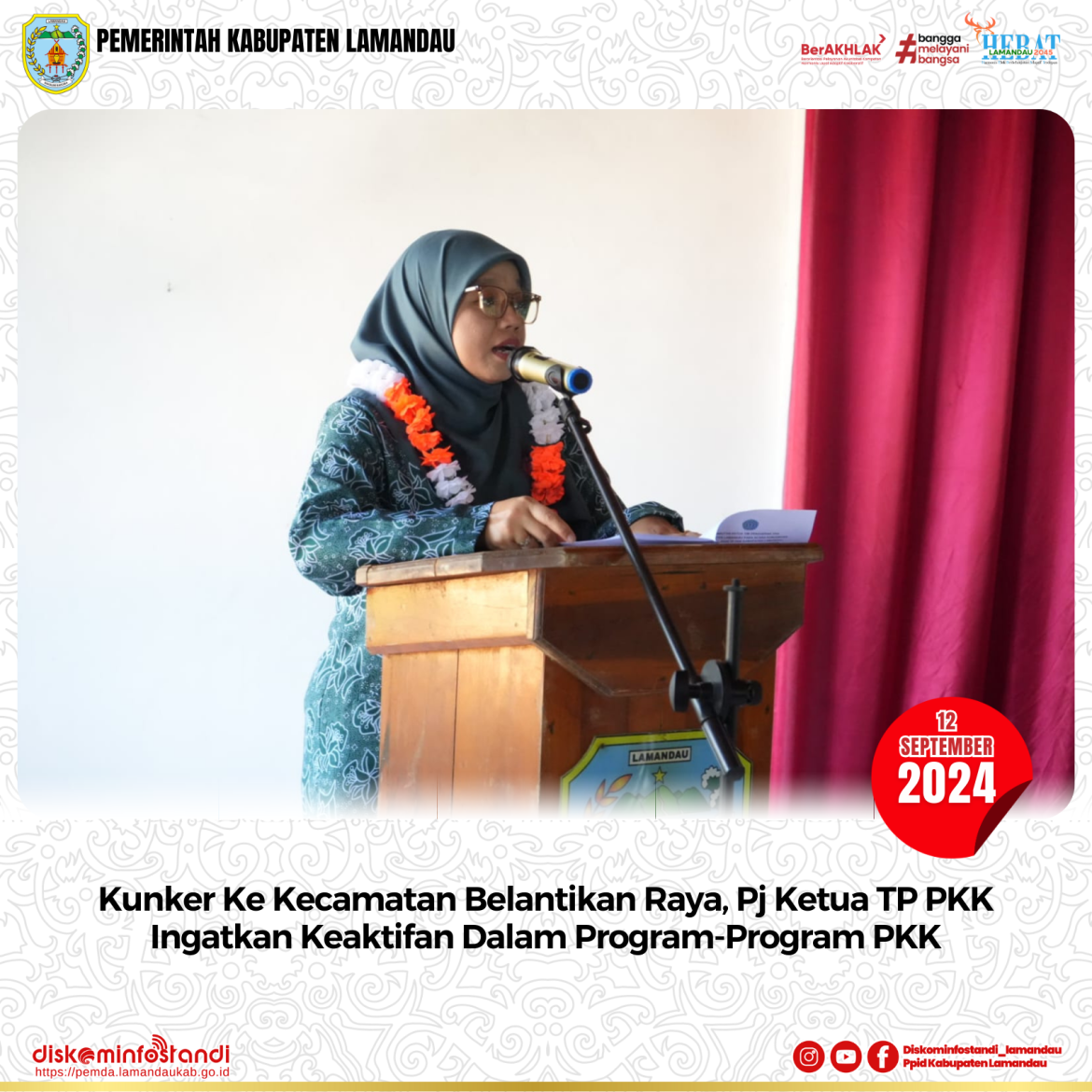 “Dalam melaksanakan gerakan 10 program pokok, Kader PKK dapat bersinergi serta berkolaborasi dengan pemerintah kecamatan, desa maupun dengan lintas sektor”, kata Pj Ketua TP PKK Kabupaten Lamandau.