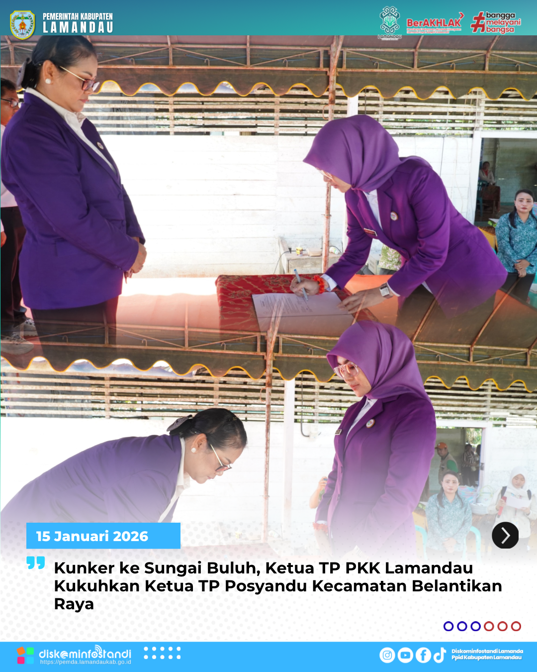 Sungai Buluh – Setelah sebelumnya melaksanakan kunjungan kerja ke sejumlah kecamatan di Kabupaten Lamandau, Ketua TP PKK Kabupaten Lamandau, Ny. Norol Latifah Rizky Aditya Putra, S.H., kembali melanjutkan agenda kunjungan kerjanya. Kali ini, bersama Wakil Ketua TP PKK Kabupaten Lamandau Ny. Helen Erawati Abdul Hamid, ia berkunjung ke Desa Sungai Buluh, Kecamatan Belantikan Raya, Kamis (15/1/2026).