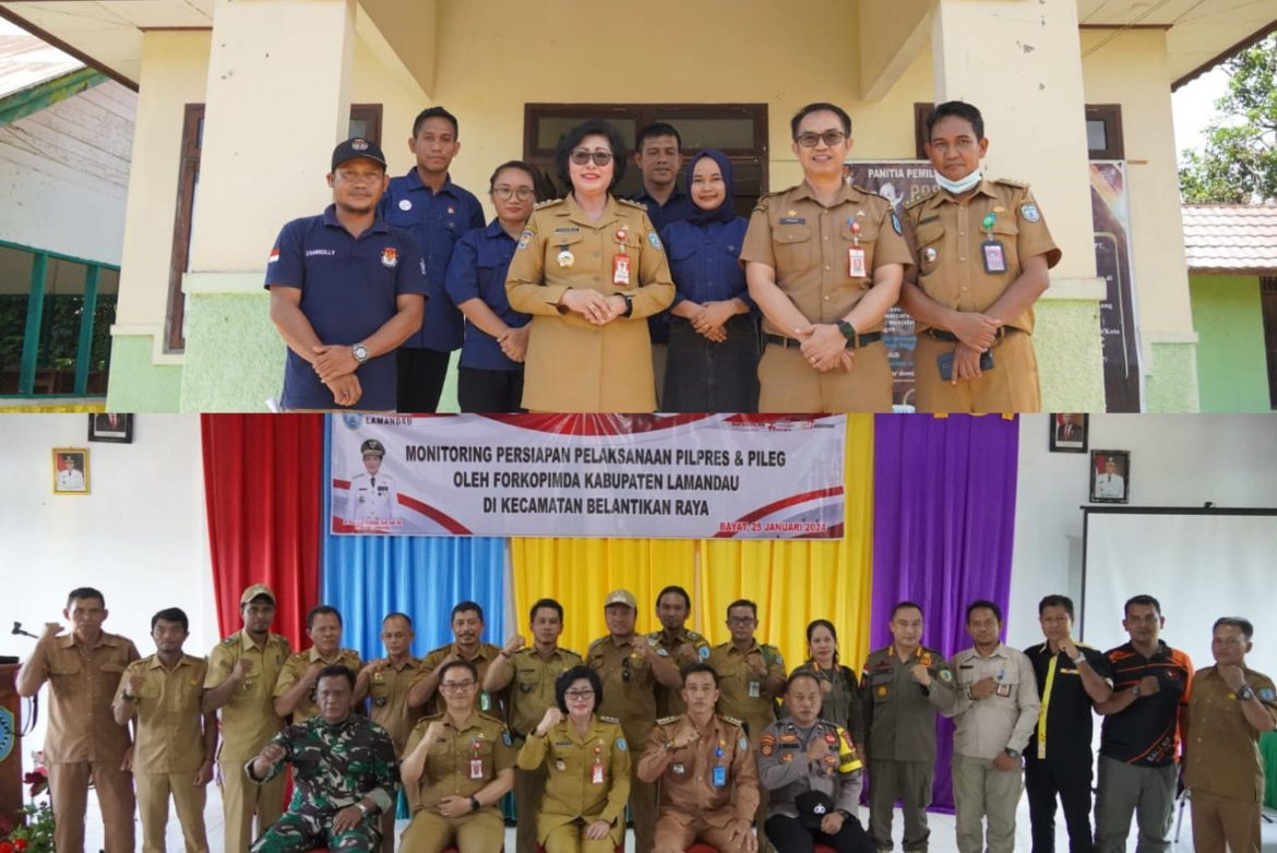 Nanga Bulik – Pj Bupati Lamandau Lilis Suriani bersama Forkopimda kembali mengadakan Monitoring Persiapan Pelaksanaan Pilpres dan Pileg Kabupaten Lamandau di Kecamatan Lamandau, dan di Kecamatan Belantikan Raya, Selasa (30/1).