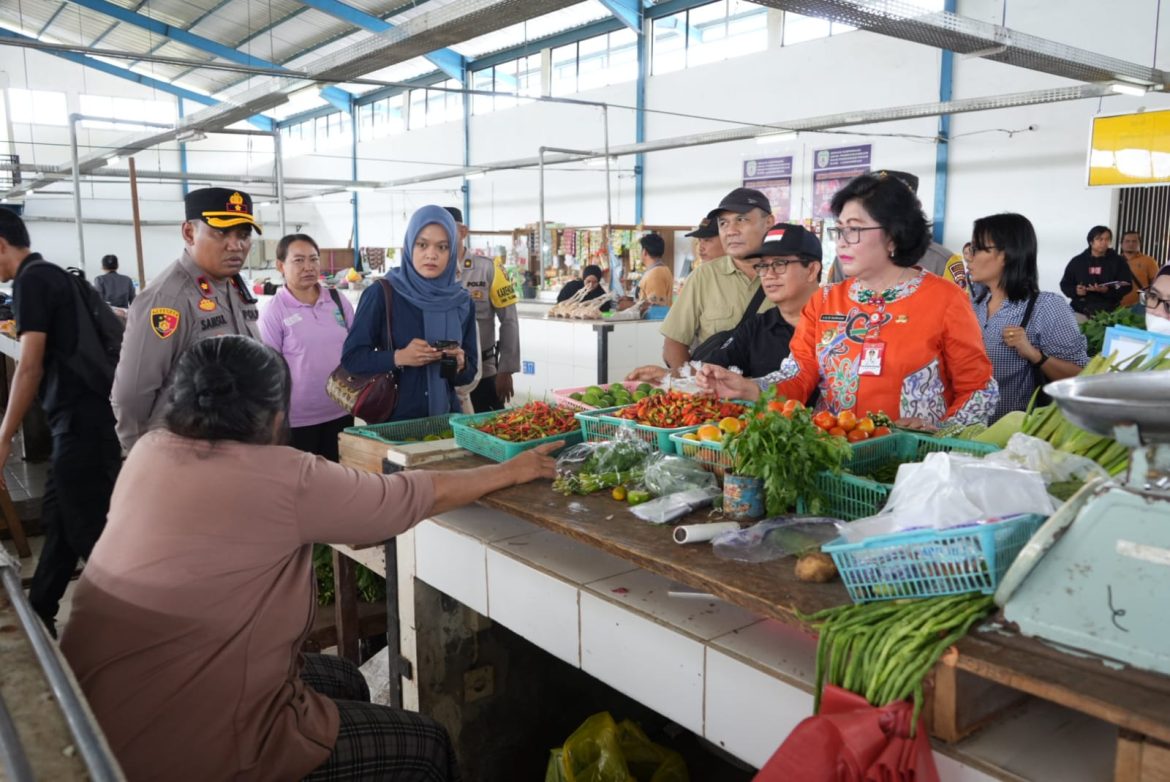 Pj Bupati Lamandau Lilis Suriani bersama sejumlah unsur Forkopimda dan Kepala OPD terkait, turut serta dalam pemantauan harga kebutuhan pokok.